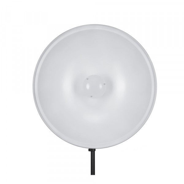 Powierzchnia dyfuzyjna tego modelu jest biała, dzięki czemu światło jest zmiękczone w stosunku do tego, które uzyskujemy przy pomocy srebrnej wersji tego modyfikatora. W zestawie znajduje się tekstylny dyfuzor, którym można dodatkowo rozproszyć światło. Quadralite Beauty Dish posiada mocowanie typu Bowens w związku z czym pasuje do niego szeroka gama osprzętu Quadralite oraz innych producentów.