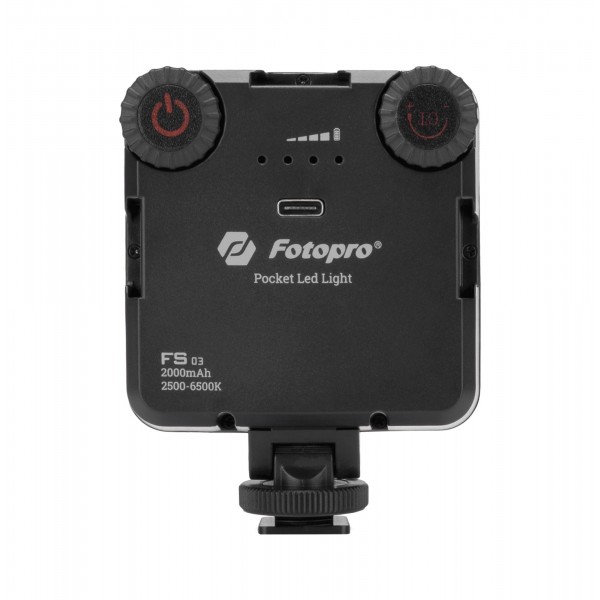 Fotopro FS-03 to kieszonkowa lampa LED pozwalająca osiągnąć imponujący strumień światła o jasności 850 lumenów. Wykorzystasz ją w makrofotografii, fotografii produktowej lub ulicznej. Urządzenie znajdzie też zastosowanie wśród youtuberów, tiktokerów i innych twórców video. Dwa pokrętła zapewniają wygodną regulację mocy oraz temperatury barwowej. Zimna stopka umożliwia szybką instalację lampy na szynowych uchwytach znanych z aparatów fotograficznych i rigów. 3 punkty montażowe pozwolą podłączyć dodatkowe urządzenia i akcesoria. Wbudowany akumulator o pojemności 2000 mAh to gwarancja długiego czasu pracy. W razie potrzeby lampę bez trudu naładujesz z poziomu wbudowanego portu USB-C lub podłączysz ją do power banku w trakcie pracy, zyskując pewność, że nie zabraknie Ci światła!