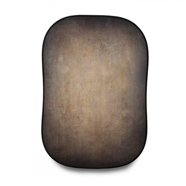 Składane tło Vintage Walnut/Pewter jest dwustronne, z ręcznie malowanymi wzorami. Walnut ma rustykalną teksturowaną powierzchnię z dramatycznymi ciepłymi tonami przypominającymi kawę i antyczne drewno z mocnym kontrastem i subtelną winietą. Pewter ma dramatyczną, teksturowaną powierzchnię w odcieniach szarości i czerni, które sugerują węgiel lub onyks.