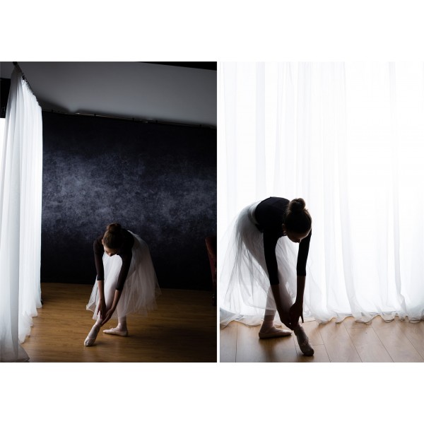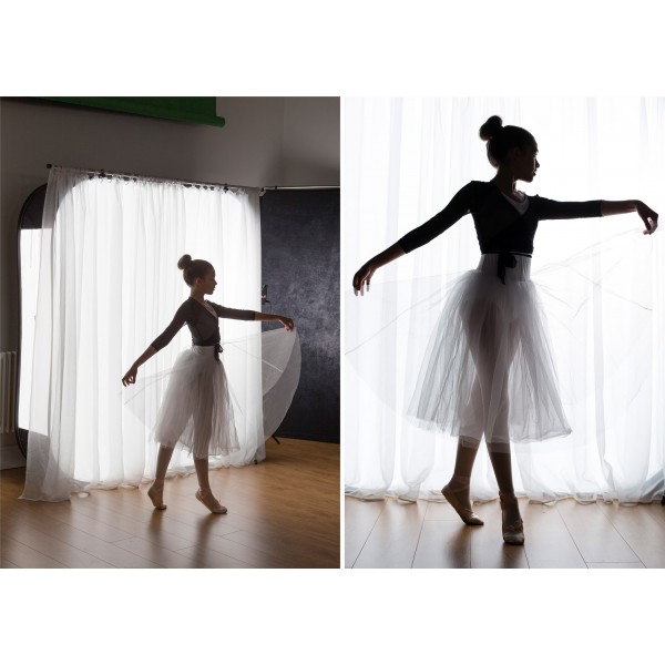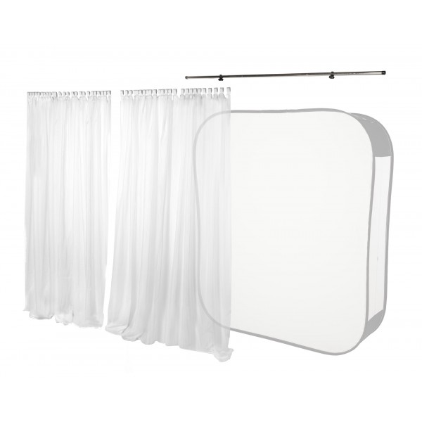 Woal zmienia tło HiLite 1,8m x 2,15m LL LB8867 w duże źródło światła, pozwalając stworzyć wrażenie dużego okna lub drzwi. Przysłonięte przez woal tło HiLite, może również pojawić się w zarejestrowanym ujęciu stwarzając iluzję okna nawet w ciemnym studio lub w plenerze. Zawieszany jest przodu tła na dołączonej, składanej poprzeczce.