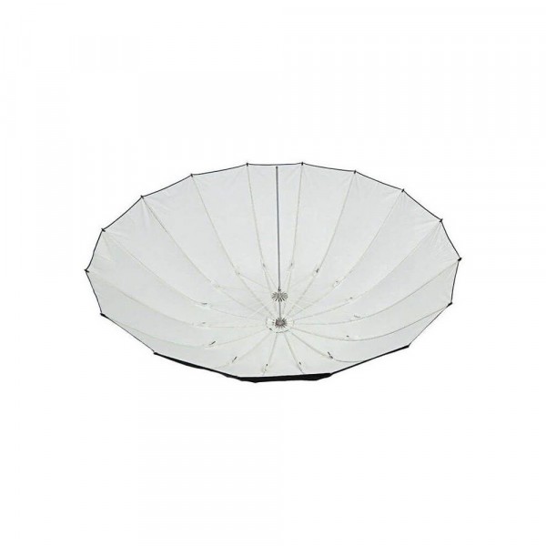 Biała wewnętrzna strona parasolki odbija, lekko rozprasza, ukierunkowywuje światło bez zmiany temperatury barwowej. Czarna zewnętrzna powierzchnia zapobiega niechcianym odbiciom i refleksom.