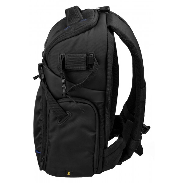 Plecak wyposażony został w wygodne, regulowanej długości szelki z pasem ściągającym na wysokości piersi oraz rączkę w górnej części. W komplecie znajduje się pasek za pomocą którego możemy przyczepić statyw z prawego lub lewego boku plecaka.