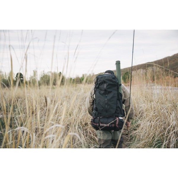 Zewnętrzna kieszeń na duży bukłak z wodą jest całkowicie odseparowana od reszty plecaka wodoodpornym materiałem. Nie musisz bać się zmoczenia drogocennego dobytku w wypadku drobnej awarii hydrauliki. Rurkę od bidonu możesz przeprowadzić przez dedykowany "rękaw".