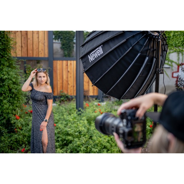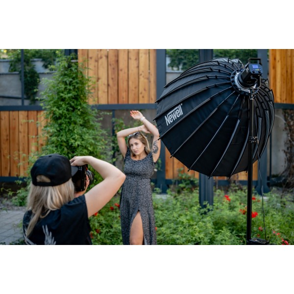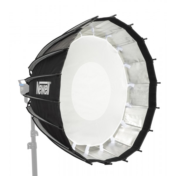 Newell Scatto to wysokiej jakości softbox paraboliczny o średnicy 90 cm. Jego wnętrze wypełnia specjalna srebrna powłoka, która działa jak reflektor.