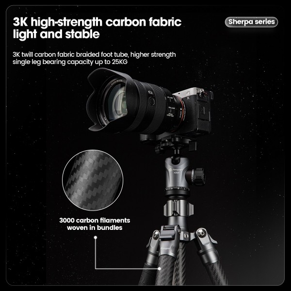 Fotopro Sherpa Plus wyróżnia się nie tylko nieprzeciętną funkcjonalnością, ale także oryginalnym wyglądem i wysoką jakością wykonania. Połączenie lekkiego włókna węglowego 3K oraz metalowych elementów wykończonych szarym kolorem świetnie się prezentuje, zapewniając przy tym trwałość na długie lata. Co ważne, wszystkie statywy firmy Fotopro objęte są sześcioletnią gwarancją!