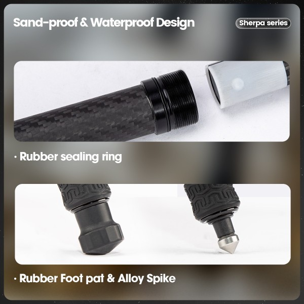 Nóżki statywu Fotopro Sherpa Max wyposażono w gumowe, antypoślizgowe nakładki. Dzięki temu panele i parkiety, na których będziesz go ustawiać, nie zostaną zarysowane, a konstrukcja zapewni Twoim kadrom optymalną stabilność. Jeśli pracujesz w terenie, po prostu zdejmij gumowe nóżki i skorzystaj z przyczepnych kolców. Będzie to idealne rozwiązanie, gdy statyw stanie na ubitej ziemi, lodzie, błocie lub piasku.