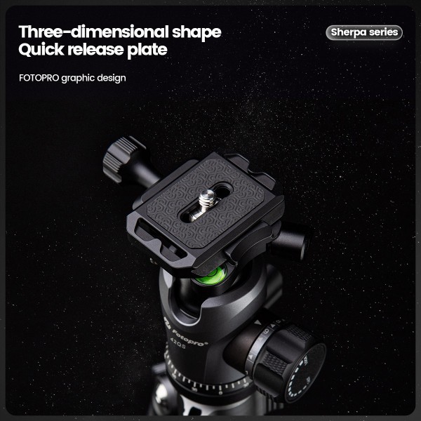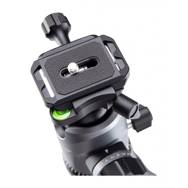 Głowica kulowa Fotopro 62QS, która wieńczy statyw, świetnie sprawdzi się zarówno w przypadku dynamicznych kadrów, jak i podczas fotografowania statycznych krajobrazów oraz portretów. Wyposażono ją w dwa niezależne i wygodne w użyciu pokrętła. Jedno z nich pozwala płynnie regulować siłę zacisku blokującego kulę podczas pochylania. Drugie pokrętło kontroluje ruch obrotowej podstawy głowicy. Naniesiono na nią skalę 360°, która ułatwi precyzyjne panoramowanie. Głowica jest kompatybilna z płytkami szybkiego montażu wykonanymi w popularnym standardzie Arca-Swiss. Dwie poziomnice pozwolą idealnie ustawić aparat i uzyskać perfekcyjne kadry w każdych warunkach terenowych!