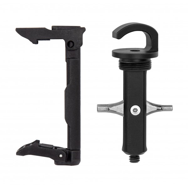 Schowek znajdujący się wewnątrz kolumny centralnej kryje kieszonkowy niezbędnik oferujący 2 klucze imbusowe. Dzięki nim z łatwością wyregulujesz statyw, dokręcisz aparat do płytki montażowej lub połączysz ze sobą różne akcesoria fotograficzne. Wyposażono go również w dwa męskie gwinty 1/4". Dzięki nim możesz połączyć niezbędnik z uchwytem na smartfon lub wkręcić go w wybrany gwint, aby klucze imbusowe były zawsze w zasięgu wzroku.