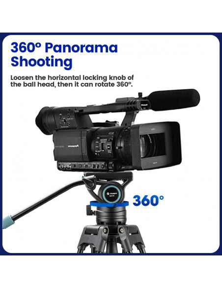 Głowica, jaką oferuje statyw video Fotopro DV-3 oferuje dwie płynnie działające osie pracy – pochyłu oraz panoramowania. Obie wyposażono w niezależne blokady, dzięki którym żaden przypadkowy ruch nie zakłóci zaplanowanego ujęcia. W celu poprawy komfortu użytkowania oś pochyłu wyposażona została również w regulowany system równoważenia kamery. W zależności od ciężaru wykorzystywanego sprzętu perfekcyjnie dopasujesz opór ruchów, ułatwiając tym samym wygodną kontrolę pracy urządzenia. Długa rączka zakończona antypoślizgowym uchwytem, którą można zainstalować po lewej i po prawej stronie głowicy, pomaga precyzyjnie zarządzać ruchami kamery. Można ją również szybko zdemontować na czas transportu. Posiada również regulowaną długość.