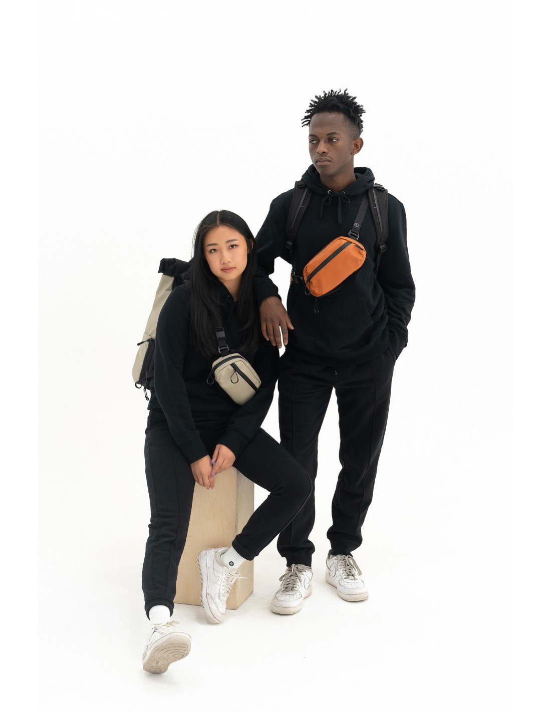 - torba biodrowa i przylegający do ciała "sling bag" w jednym