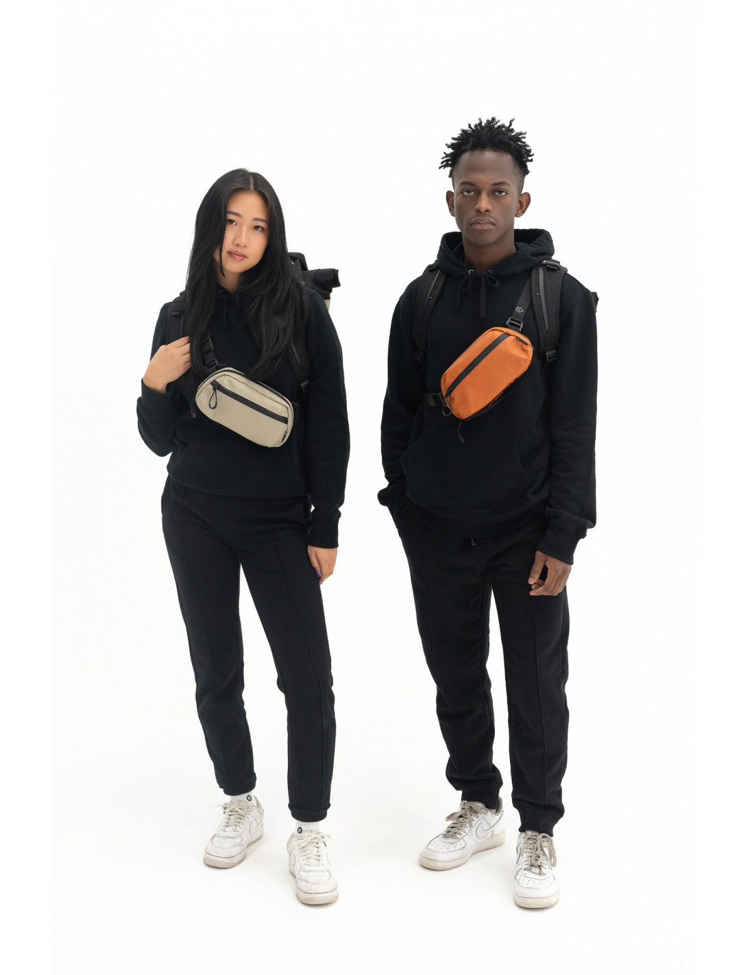 - torba biodrowa i przylegający do ciała "sling bag" w jednym