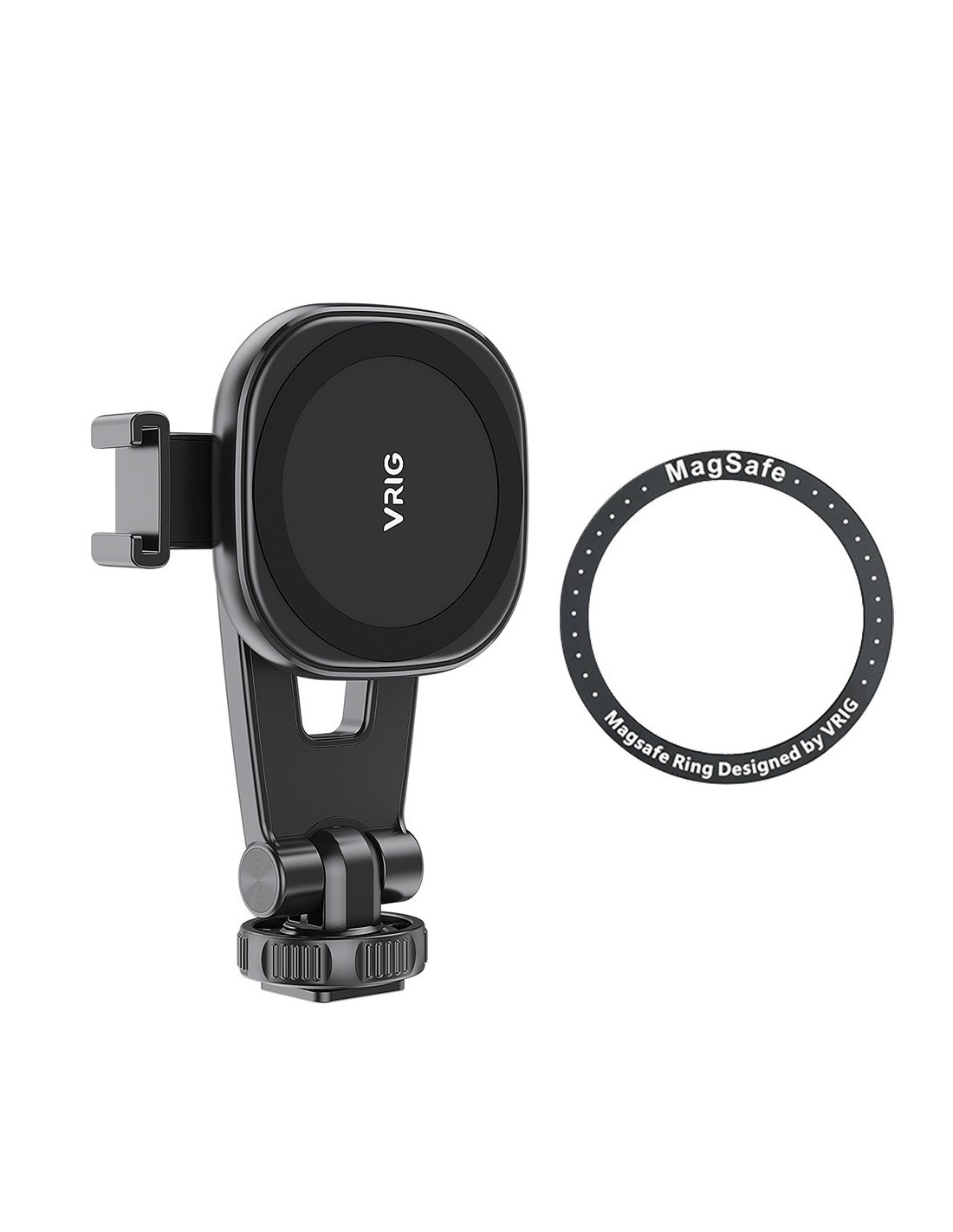 Uchwyt VRIG MG-03 to praktyczne akcesorium umożliwiające bezpieczny montaż smartfona na statywie fotograficznym. Dzięki magnetycznemu mocowaniu szybko i łatwo przymocujemy do niego telefon. Uchwyt jest kompatybilny z iPhone'ami ze złączem MagSafe, a dzięki dołączonemu w zestawie adapterowi, także z innymi modelami - także spoza oferty Apple. Dodatkowo oferuje regulację kąta nachylenia oraz możliwość montażu zewnętrznych akcesoriów dzięki adapterowi cold shoe.