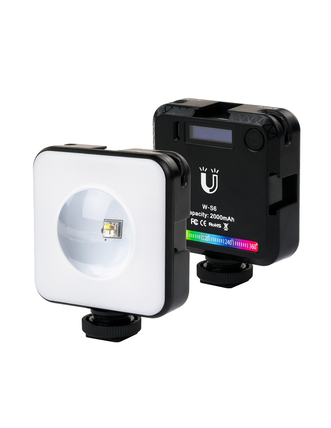 Kompaktowa lampa diodowa LED VRIG W-S6 z regulacją mocy światła i jego temperatury barwowej od 2500 do 9000 K, trybem koloru RGB oraz gotowymi programami tematycznymi. Wyposażona w pomocniczy wyświetlacz, wbudowany akumulator oraz magnetyczną obudowę może być zamontowana także na stopce aparatu oraz na statywach z gwintem 1/4''.