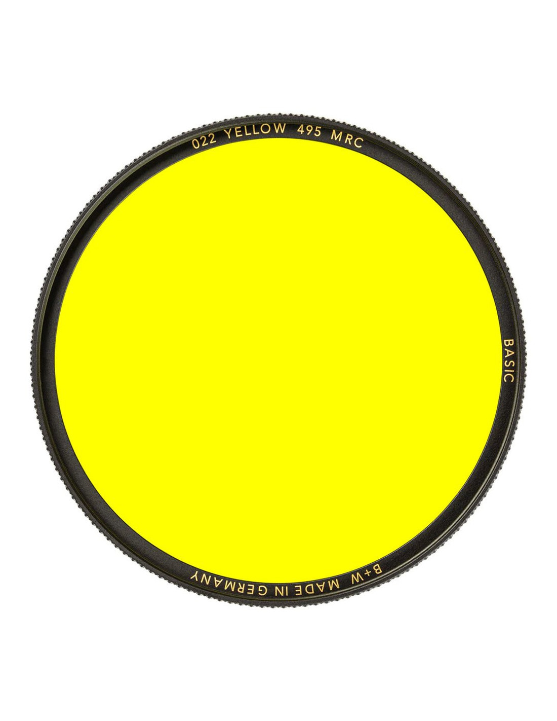 B+W Basic 022 Yellow MRC to filtr barwny należący do nowej, podstawowej serii Basic marki B+W która zastąpiła popularną i cenioną przez zawodowych fotografów serię F-pro. Filtr żółty znajduje zastosowanie w fotografii czarnobiałej. Pochłaniając niebieski kolor, ten filtr sprawi, że niebo na zdjęciu stanie się bardziej ciemne, natomiast kolor żółty będzie wydawać się jaśniejszy. Zastosowanie tego filtra jest szerokie: doskonale sprawdza się w przypadku fotografowania krajobrazów, gdzie pomaga przyciemnić niebo, w portretach, gdzie podkreśla jaśniejszy odcień skóry, oraz przy fotografowaniu śniegu. Filtr żółty to jedno z najczęściej używanych narzędzi w fotografii czarno-białej. Jego wszechstronność pozwala na efektywne zastosowanie w większości sytuacji fotograficznych, dlatego też w przeszłości praktycznie nieodłącznie towarzyszył aparatom wielu fotografów, często stanowiąc jedyny wybór.