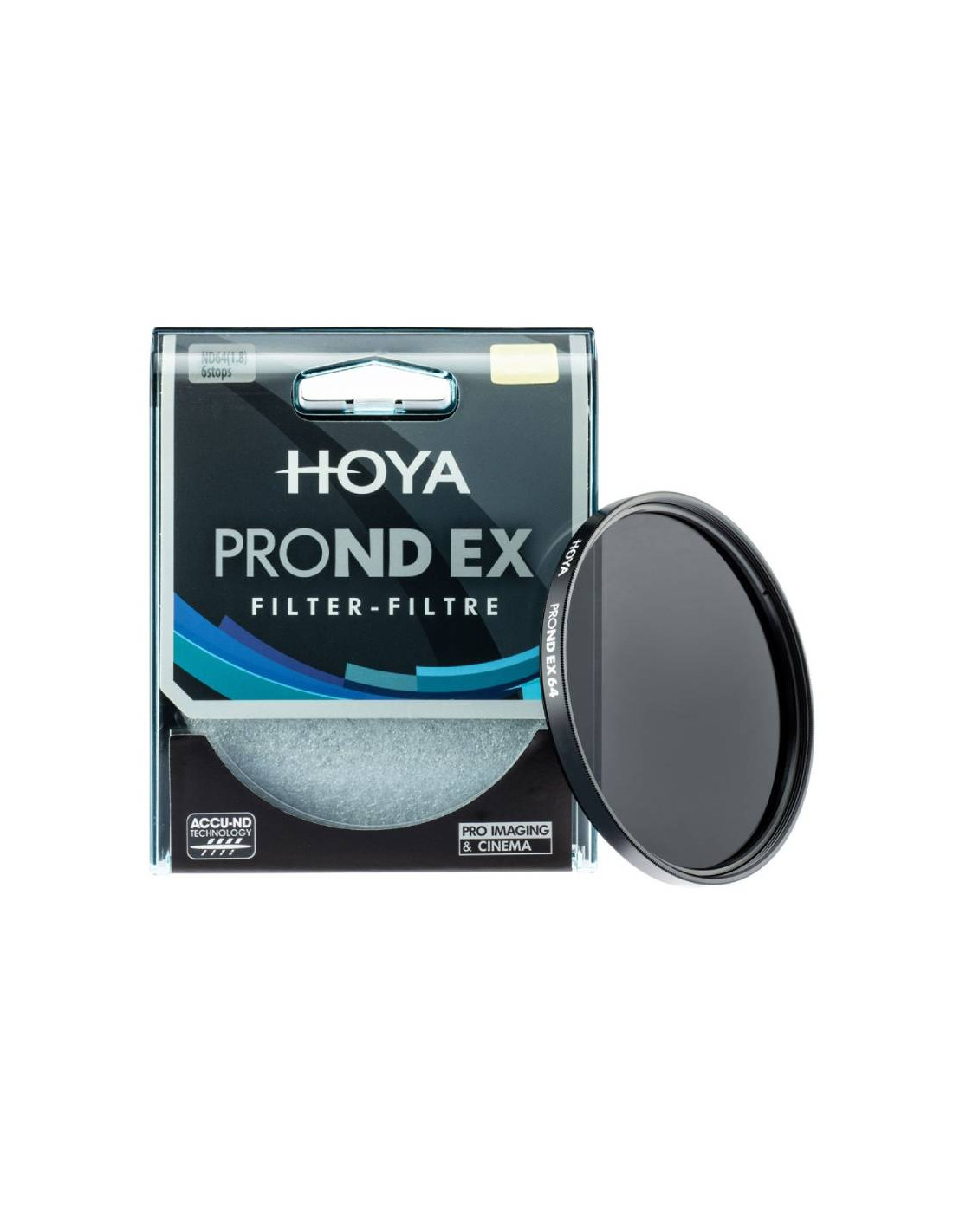 Marka Hoya posiada szeroką gamę filtrów ND z serii PRO ND EX, przeznaczonych zarówno dla fotografów, jak i filmowców. W filtrach PRO ND EX zastosowano przeźroczyste szkło optyczne Hoya, które zostało umieszczone w niezwykle lekkiej aluminiowej oprawie. Ramka posiada przedni gwint, dzięki czemu można do niej zamocować dodatkowe filtry lub osłonę obiektywu. Wysoka jakość szkła optycznego filtrów serii PRO ND w połączeniu z technologią ACCU-ND zapewnia dodatkowo wyjątkowy komfort użytkownikom. Podczas rejestracji zdjęć w dynamicznie zmieniających się warunkach oświetleniowych, wymagających zastosowania filtrów o różnym stopniu przepuszczalności, nie trzeba korygować balansu bieli w aparacie ani stosować dodatkowej obróbki cyfrowej zdjęć i filmów, by skorygować barwy obrazu, co często zdarza się przy użyciu tańszych filtrów szarych innej produkcji.