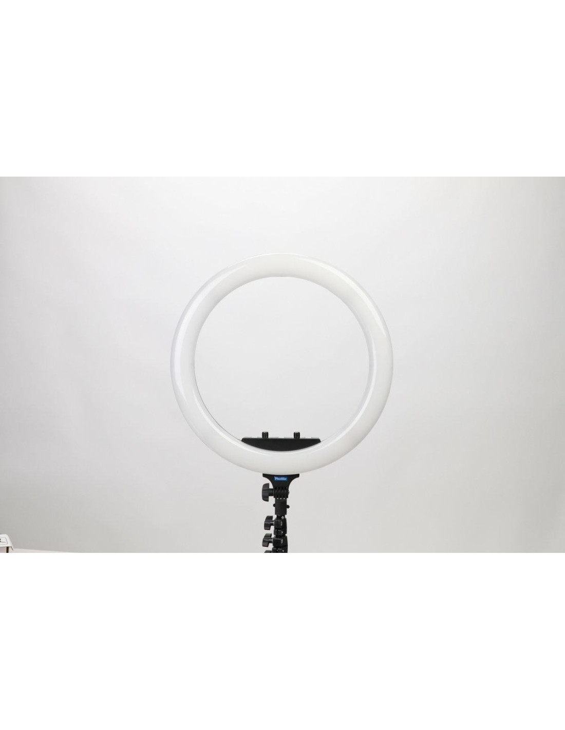 Nuada Ring 60 to lampa ledowa typu Ring przeznaczona do profesjonalnych zastosowań przy zdjęciach lub filmie. Zbudowana jest 216 lamp led o chłodnym kolorze 5600K i 216 lamp led w kolorystyce 3200K. Taka konfiguracja lamp led jest idealnym rozwiązaniem aby osiągnąć wysokiej jakości miękkie światło oświetleniowe. Moc lampy to 48W a parametr określający jakość kolor CRI wynosi 95+. Lampa dysponuje aż 5 uchwytami na zimne stopki na których można zamontować smartfon, aparat lub mikrofon. Na tylnym panelu znajduje się port USB przy pomocy którego można zasilić w energię smartfon lub aparat. Lampa zasilana jest za pomocą 2 baterii typu NP-F750 (brak w zestawie) lub zasilacza sieciowego dostarczanego wraz z lampą. Zestaw handlowy zawiera: • lampa Nuada Ring 60 • stojak • uchwyt na kamerę • uchwyt za smartfona • zasilacz sieciowy • torba transportowa