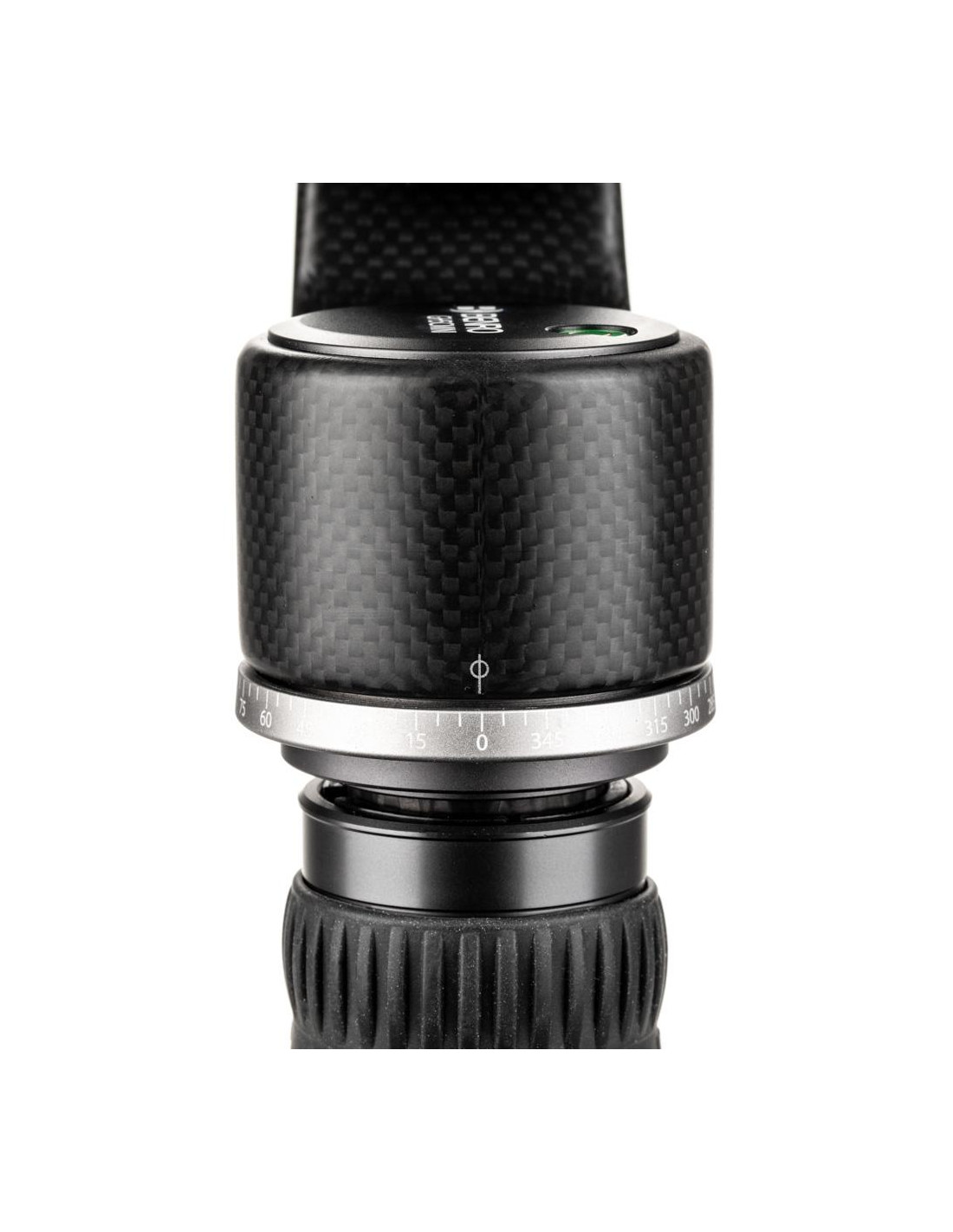 Głowica Gh5CMini posiada dwie skale niezbędne do komfortowej pracy. Pionowa umożliwia odpowiednie wyważenie zestawu i jest pomocna przy śledzeniu szybko poruszających się obiektów. Skala pozioma kontroluje obrót głowicy wokół osi i daje możliwość dokładnego panoramowania w zakresie 360 stopni.