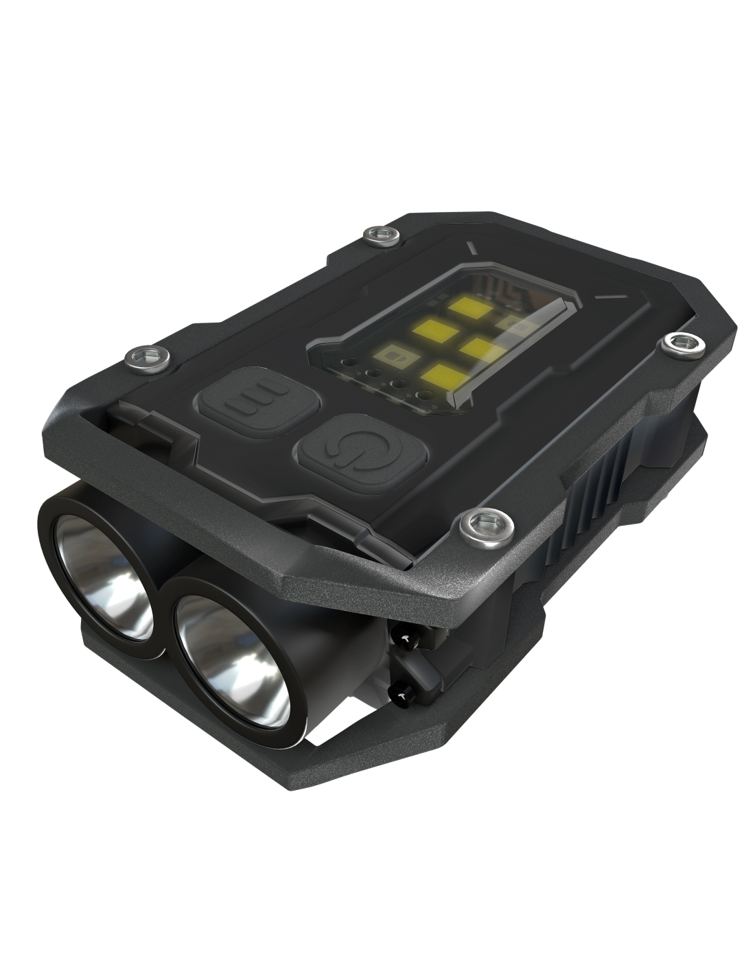 Dwa moduły LED umieszczone na szczycie latarki Newell EDC Nyks Solid mogą działać razem lub osobno. W sumie mamy do wyboru 4 różne tryby pracy: