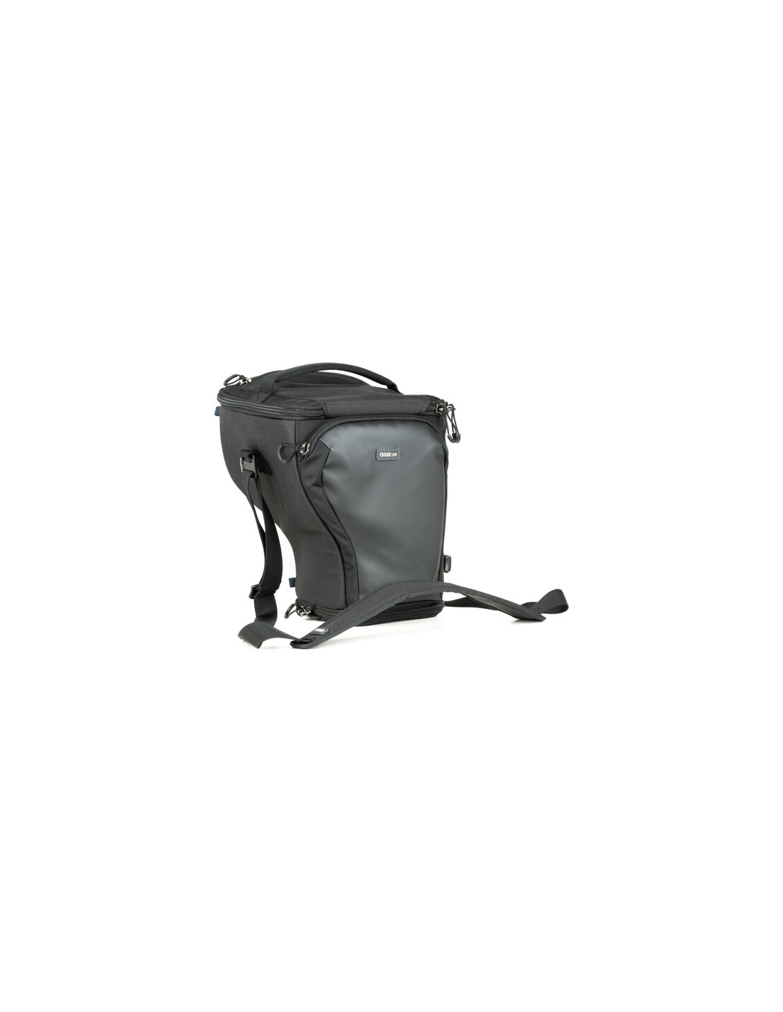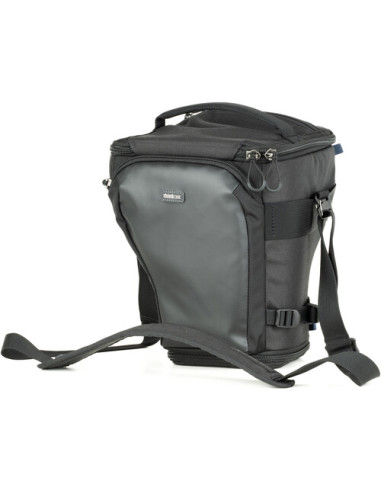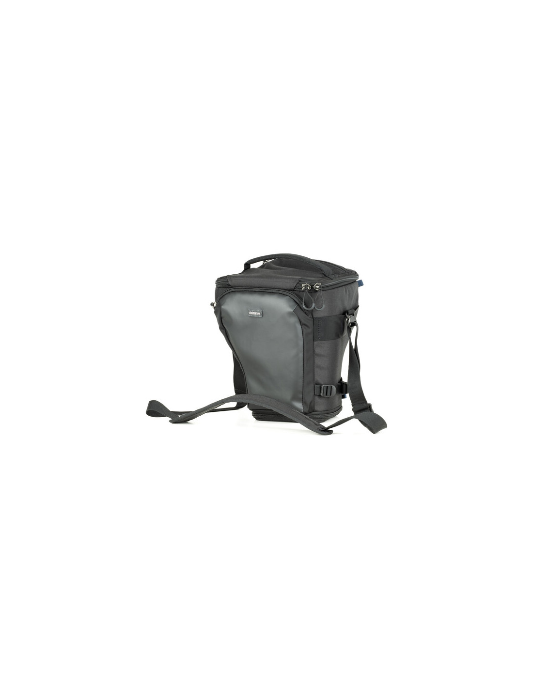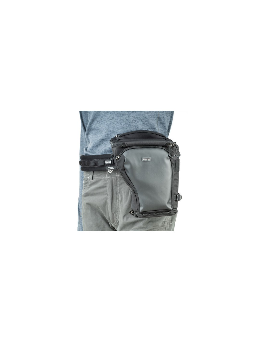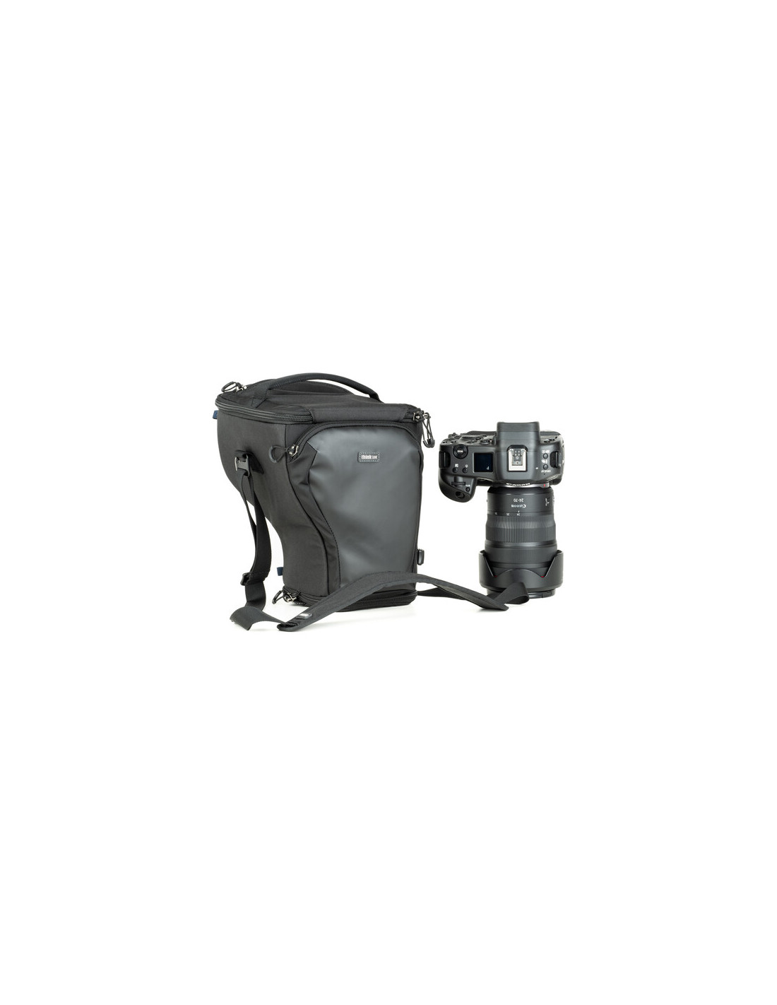 Chroń i noś swój aparat dzięki kaburze V3 Digital Holster 40 od Think Tank Photo. Wymiary wewnętrzne kabury wynoszą od 8 do 11,5 cala, aby wygodnie pomieścić lustrzankę cyfrową z obiektywem 24-70 mm f/2.8 i odwróconą osłoną. Funkcja "pop down" pozwala przedłużyć kaburę, aby zmieścić aparat i obiektyw 70-200 mm f/2.8 z odwróconą osłoną. Zdejmowana miękka przegroda chroni ekran LCD aparatu przed paskiem aparatu. Kaburę można przenosić za pomocą górnego uchwytu lub założyć na ramię, korzystając z odpinanego paska antypoślizgowego. Można ją również przymocować do paska za pomocą tylnej szlufki.
