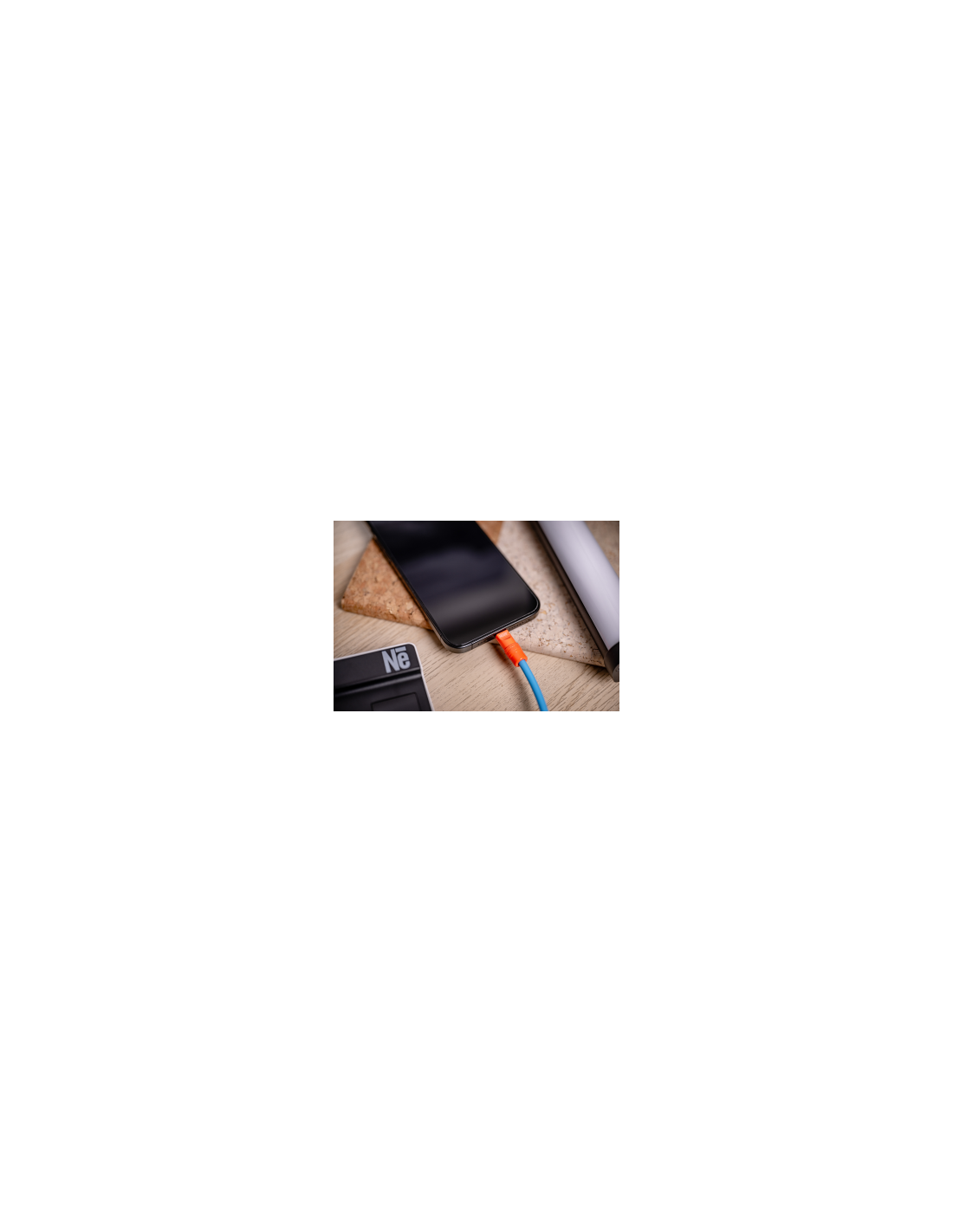 - kabel Newell USB-C - USB-C 100 W, 1,5 m, silikonowy, spiralny, niebiesko-pomarańczowy