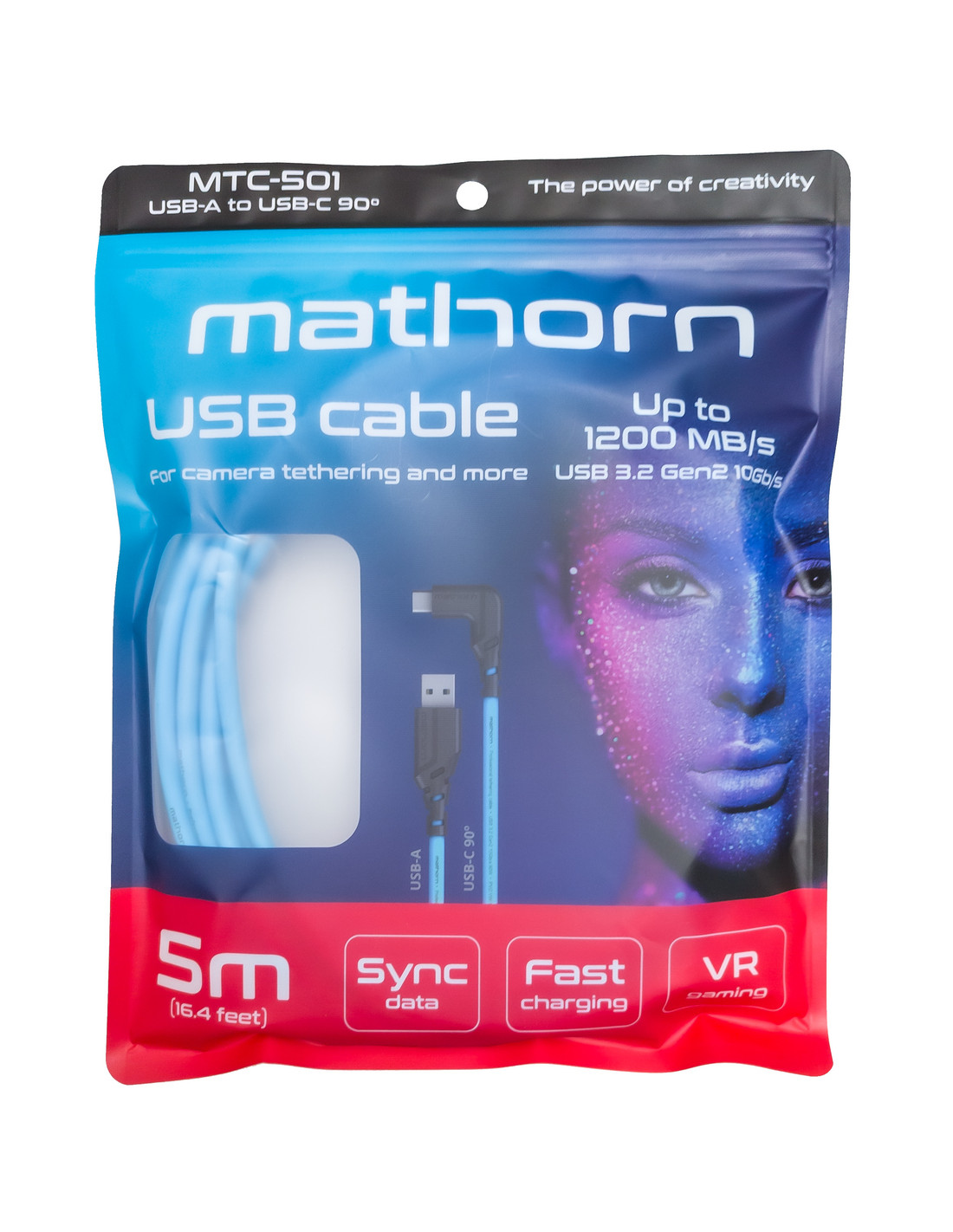 Kabel fotograficzny Mathorn MTC-501 5m 10Gbps 60W USB A-C90 ArcticBlue