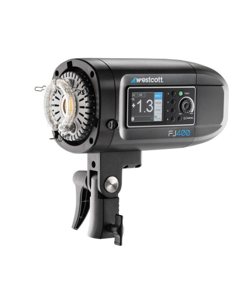 FJ400 działa na potężnym, wymiennym akumulatorze litowo-jonowo-polimerowym 14,8 V, 4400 mAh, który zapewnia 480 pełnych i tysiące błysków o niskiej mocy po 2,5-godzinnym ładowaniu. Akumulator posiada wskaźniki stanu LED, które informują o pozostałej mocy. Lampa modelująca LED o mocy 20 W zapewnia minimalne zużycie energii. Alternatywnie, podczas fotografowania w studio można zasilać głowicę lampy błyskowej prądem przemiennym za pomocą dołączonego adaptera. Lampa FJ400 jest dostarczana z magnetycznym 5,5-calowym odbłyśnikiem z trzema filtrami CTO do dopasowania do innych urządzeń, ciepłych warunków oświetleniowych otoczenia lub po prostu do kreatywnej ekspresji. W zestawie znajduje się magnetyczny filtr dyfuzyjny, który zmiękcza światło wyjściowe, a także wkładka umożliwiająca użycie dowolnego softboxu Rapid Box Switch firmy Westcott. W zestawie znajduje się również wykonany na zamówienie futerał podróżny do przechowywania i transportu.
