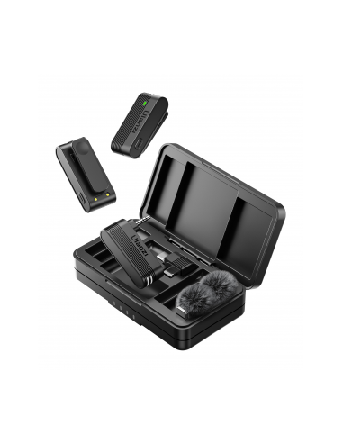 Nadajniki i odbiornik ważą zaledwie po kilka gramów i są na tyle małe, że bez problemu zmieszczą się w kieszeni. Dzięki zintegrowanym klipsom oraz magnetycznym płytkom montaż mikrofonów jest szybki i dyskretny. To szczególnie przydatne, gdy chcesz przypiąć mikroporty do ubrania. Wszystkie elementy zestawu mieszczą się w poręcznym etui, które umożliwia ładowanie nadajników i odbiornika. Łączny czas pracy wynosi aż 13,5 godziny!