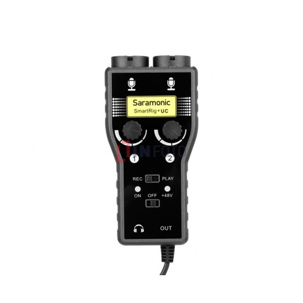 SmartRig+ UC wyposażony jest w dwa wejścia mini Jack TRS (3,5mm) i dwa wejścia XLR / Jack TRS (6,35 mm), które pozwalają na podłączenie mikrofonu, konsoli lub gitary. Wsparcie zasilania typu phantom zapewnia szeroką kompatybilność obsługiwanych mikrofonów. Sygnał wyjściowy przekazywany jest do smartfona lub tabletu za pomocą kabla USB typu C.