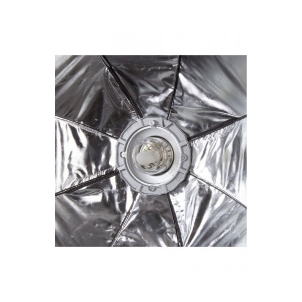 - Aluminiowy pierścień mocujący w standardzie mocowania Bowens, z możliwością obracania zamocowanego sofboxu o 360 stopni, śruba dociskowa umieszczona jest w wewnętrznej części softboxu