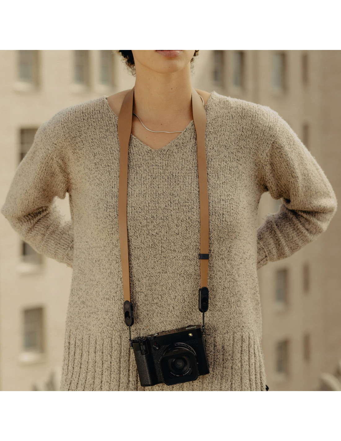 Form Leather to wysokiej jakości, skórzany pasek do aparatu fotograficznego wykonany ze skóry licowej. Ma stałą długość i został zaprojektowany z myślą o fotografach ceniących prostotę, elegancję i ponadczasowy styl.