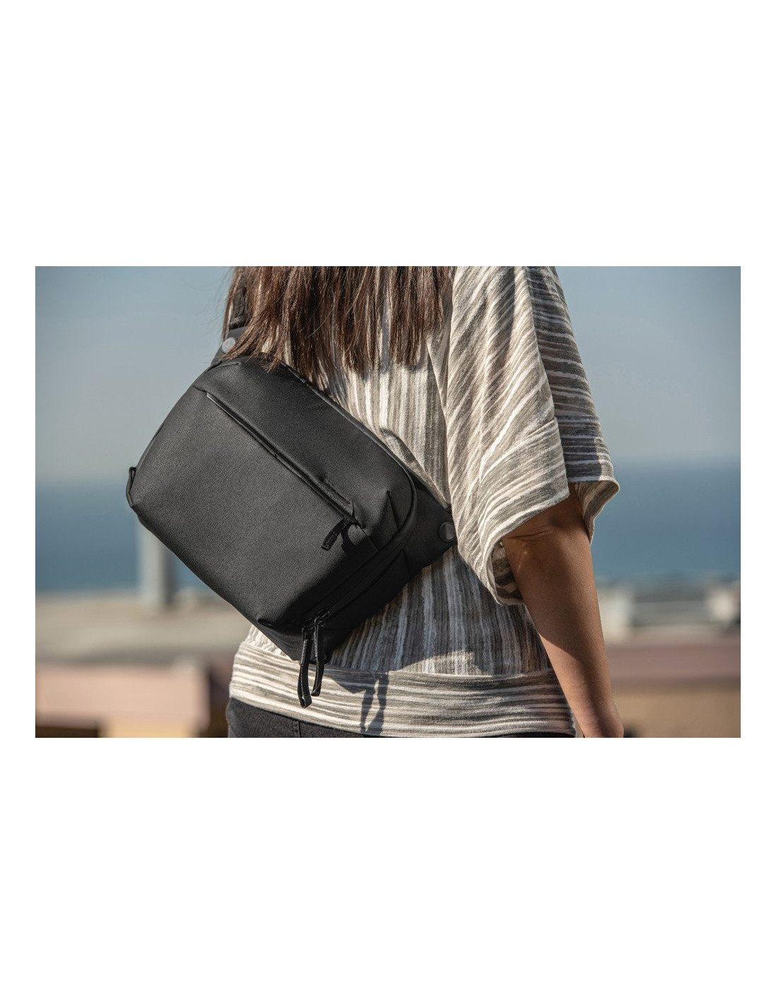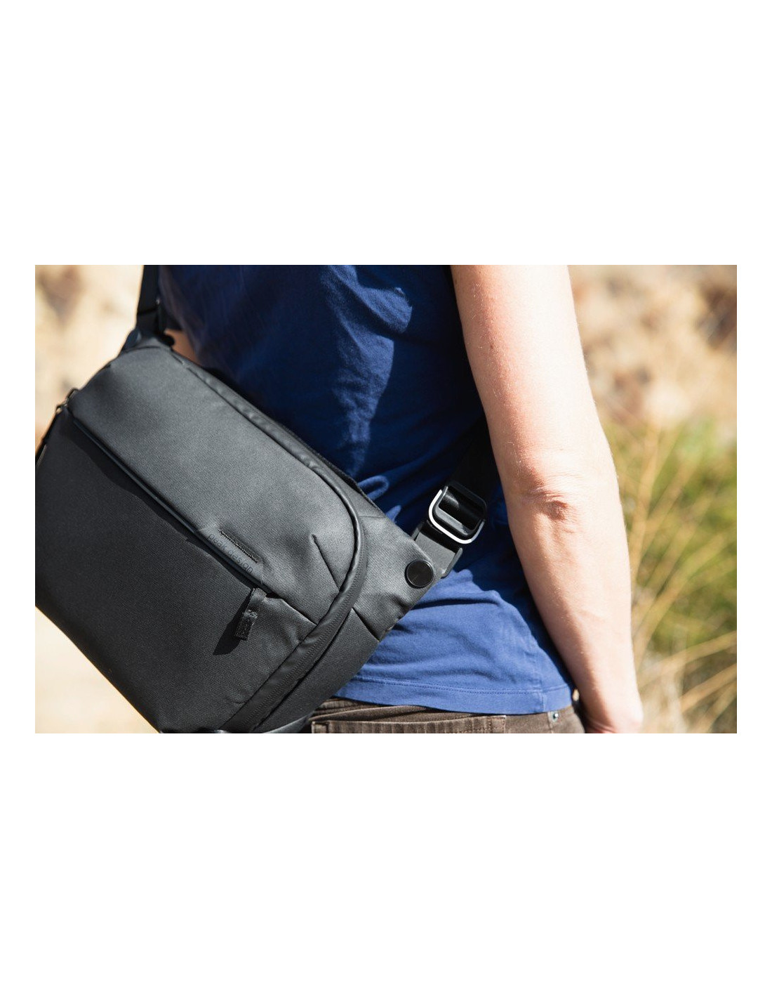 Najmniejsza i najlżejsza torba w kolekcji Everyday Line, the Everyday Sling V2 dedykowana minimalistom do użytku codziennego. Dostępna w trzech rozmiarach, umożliwiających różnorodne konfiguracje przenoszenia przedmiotów, od dalmierza po profesjonalne lustrzanki cyfrowe, obiektywy i laptopy. Możliwe jest jej noszenie w poprzek tułowia oraz jako funkcjonalną torbę na biodra. Łatwy system regulacji długości pasów pozwala na poluzowanie pasa podczas wyciągania akcesoriów z torby oraz ściągnięcie go i ścisłe dopasowanie podczas wędrówki lub jazdy na rowerze. Wodoodporny zamek zapewnia szybki i łatwy dostęp, a przegrody typu FlexFold zapewniają elastyczne dostosowanie i bezpieczeństwo przenoszonym przedmiotom. Wewnątrz znajdują się elastyczne kieszenie na małe przedmioty oraz rękaw na laptop (tylko modele 6l i 10l). Odporny na warunki atmosferyczne, pochodzący w 100% z recyklingu materiał zewnętrzny typu Kodra 400D, zabezpieczy transportowany sprzęt, a zewnętrzne kieszenie zapewnią dodatkową pojemność (tylko modele 6l i 10l). W nowej odsłonie torba Everyday Sling dostępna jest w nowych rozmiarach oraz wyróżnia się szeregiem funkcjonalnych i estetycznych ulepszeń opartych na opiniach tysięcy naszych klientów.