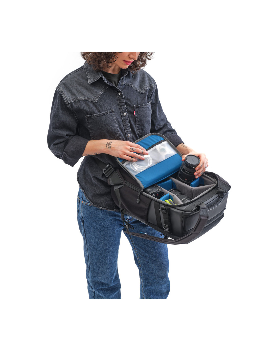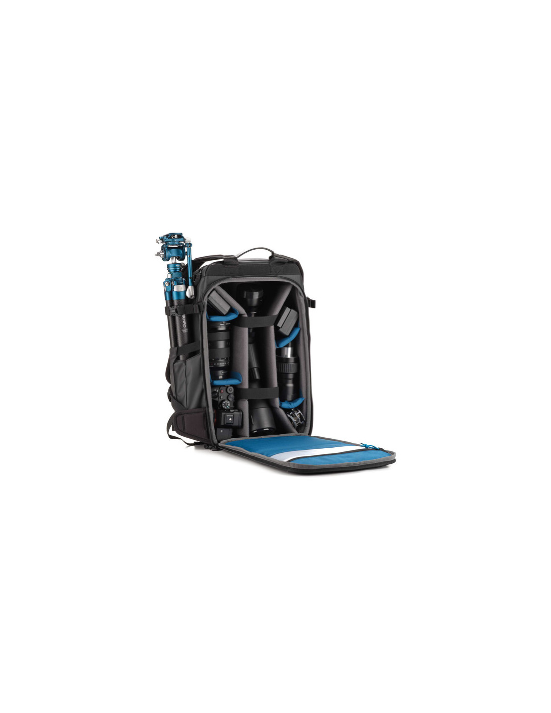 1-2 aparaty bezlusterkowe lub lustrzanki cyfrowe z 5-8 obiektywami, w tym zestaw aparatu z obiektywem o długości do 42 cm (16,5 cala) oraz laptop o przekątnej do 35 cm (14 cali). Pasuje również do DJI Mavic i innych kompaktowych dronów. Pasuje do obiektywów o długości do 600 mm