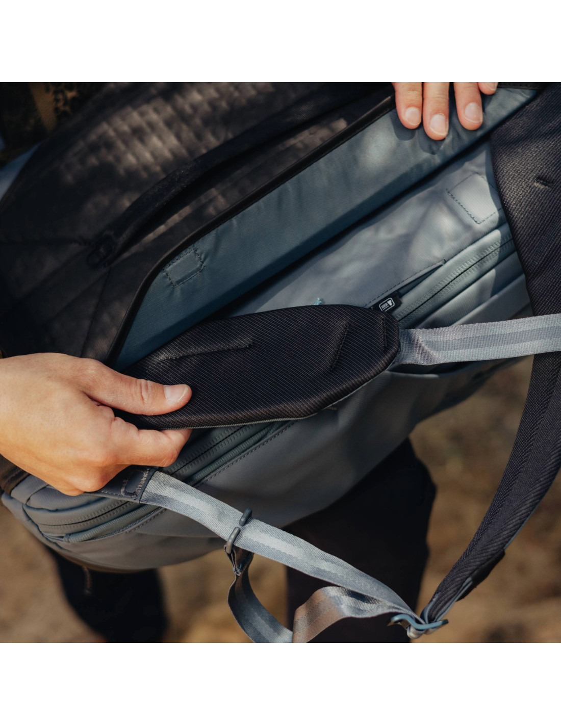 Travel Backpack 45L został zaprojektowany z myślą o maksymalnej wygodzie w trakcie podróży. Wyposażony w uchwyt do mocowania na walizce na kółkach oraz liczne przegródki do organizacji, plecak upraszcza każdy etap podróży. Moduły wewnątrz plecaka nie tylko ułatwiają pakowanie, ale także usprawniają proces kontroli bagażu na lotniskach.