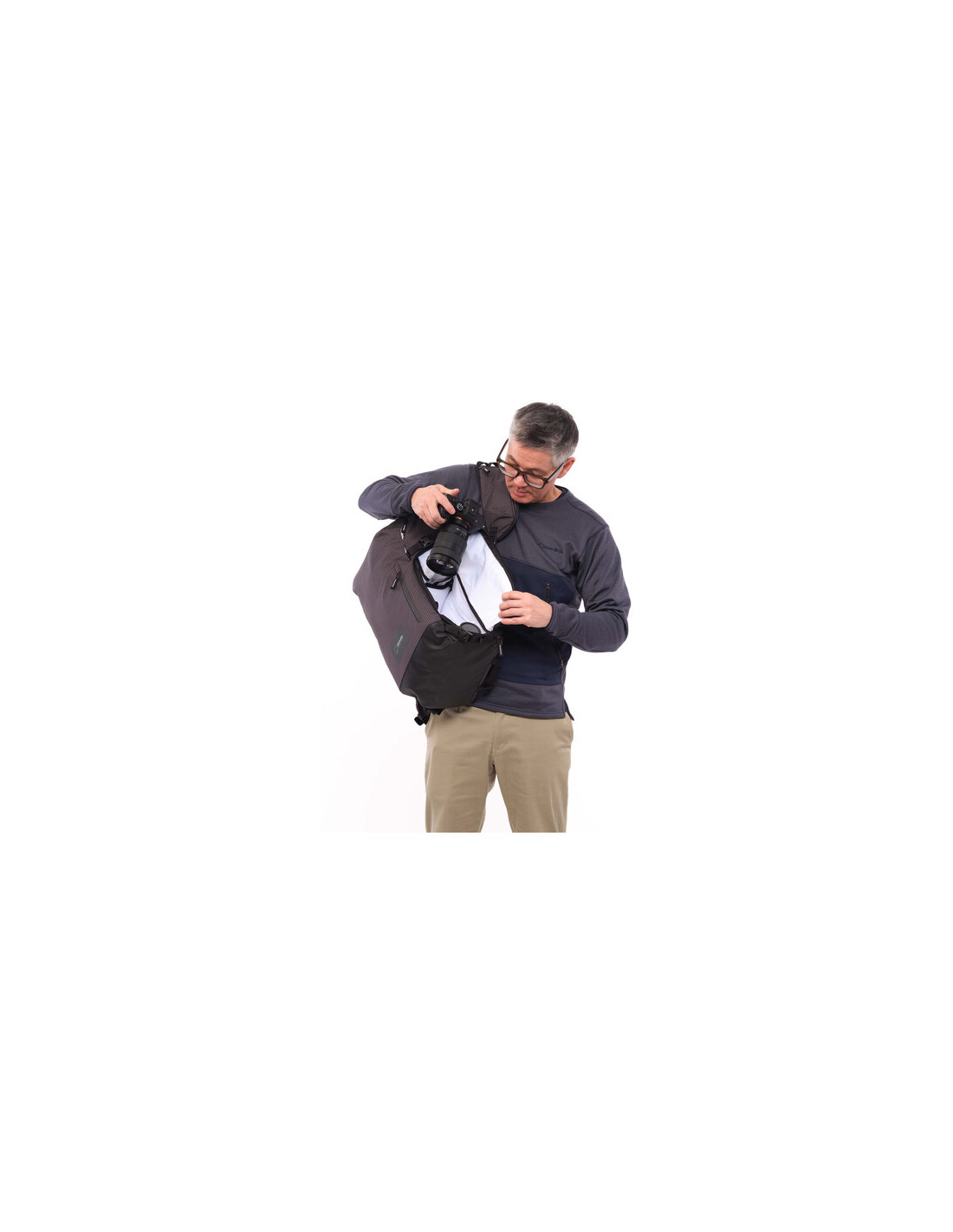 Ten zestaw zawiera charakterystyczne paski Capture Straps firmy Shimoda Designs, które są kompatybilne ze wszystkimi markami klipsów do aparatów fotograficznych i mają wyściółkę z tyłu klipsa dla większego komfortu. Paski mają zapinaną na zamek kieszeń na telefon, która pomieści iPhone'a Max, a także rozkładaną kieszeń na gadżety lub butelkę z wodą. Posiadają ukryte prowadzenie dla głośnika/mikrofonu radiotelefonu lub węża do bukłaka.