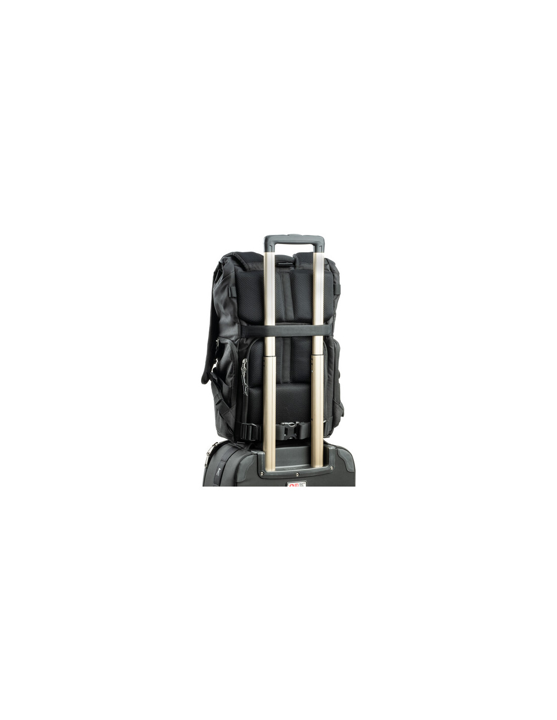 - Rękaw na wózek pozwala przymocować plecak do uchwytu walizki na kółkach, zapewniając płynną podróż.