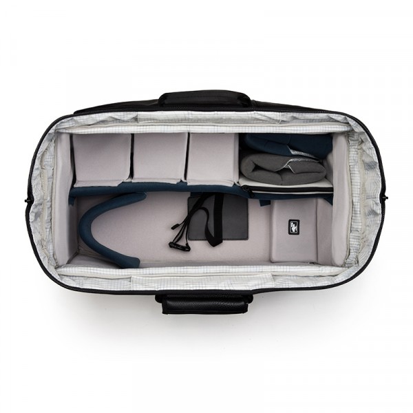 - Przegrody Flex-Core – wykonane z aluminium, ekskluzywne dzielniki gwarantują zarówno sztywne, jak i elastyczne zabezpieczenie sprzętu. Dzięki takiemu połączeniu zapewniają bezpieczne oddzielenie kamer od obiektywów, ale też są giętkie i przenośne, co pozwala doskonale skonfigurować wnętrze.