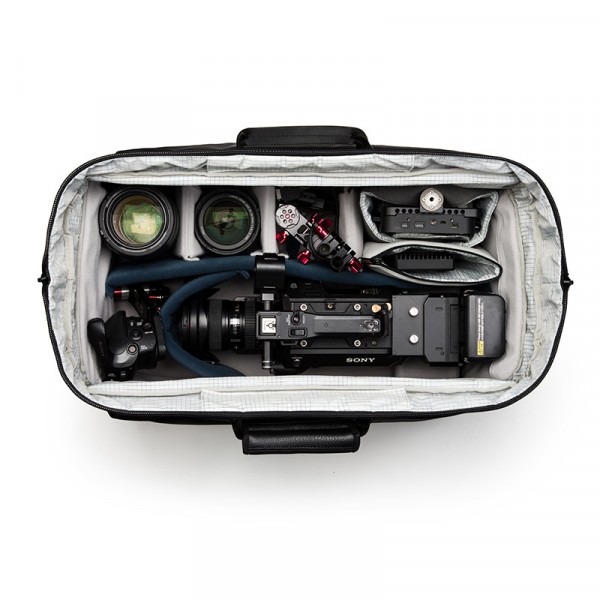 - Szybkie otwarcie wzorowane na torbach lekarskich - bardzo szeroki otwór pozwala bez przeszkód dostać się do przenoszonego sprzętu za pomocą jednego zamka błyskawicznego na górze torby. Szerokie wnętrze umożliwia przechowywanie kamery wraz z dołączoną do niej płyta bazową, mikrofonem i matte box’em.