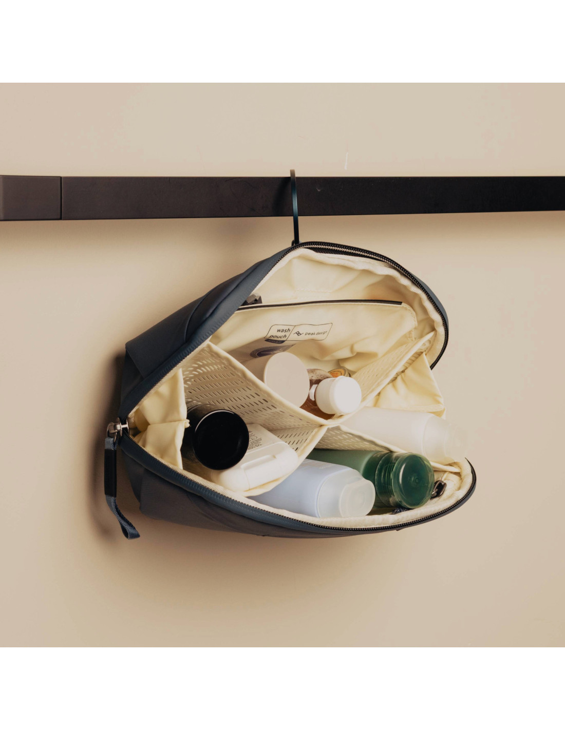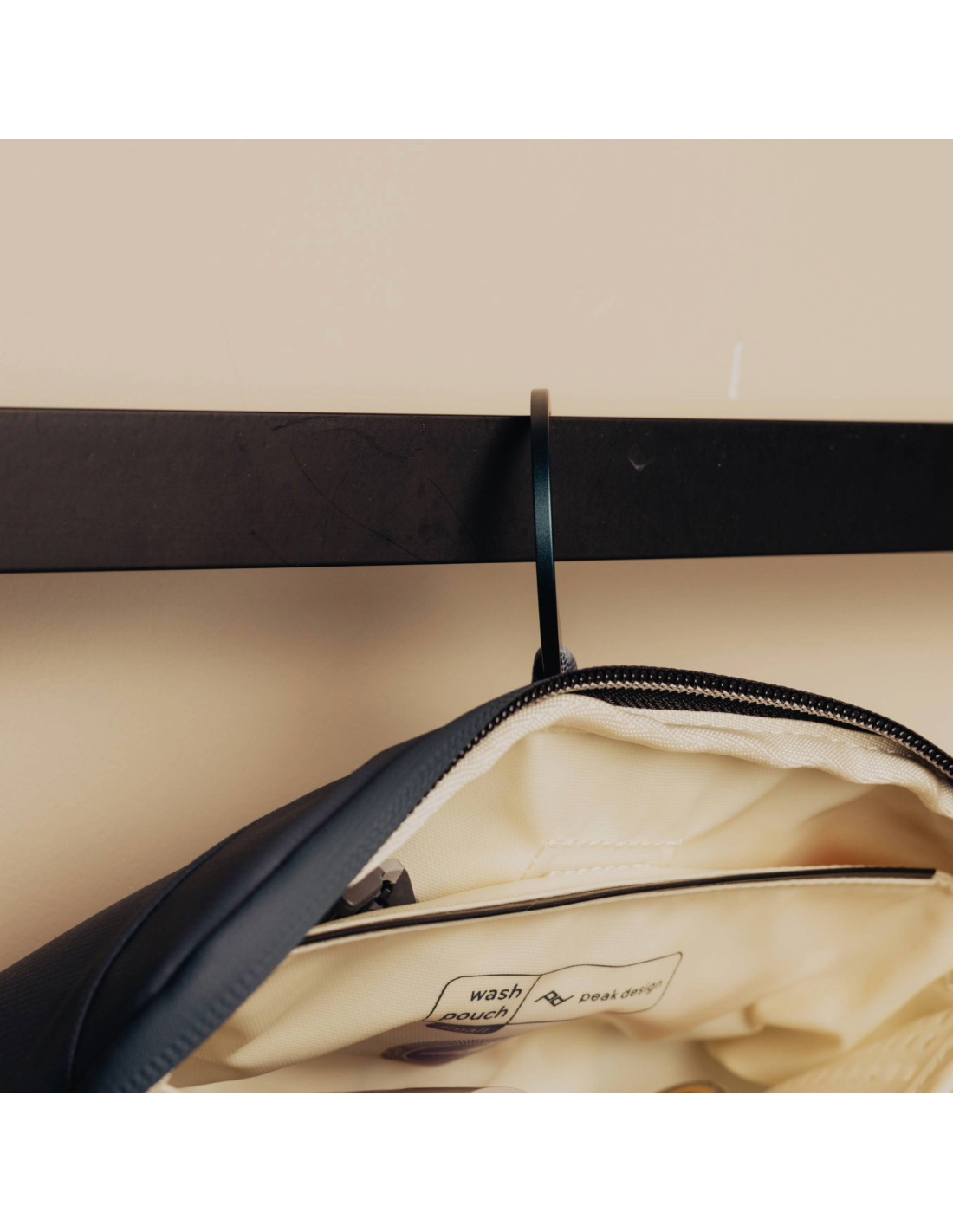 Wash Pouch Small posiada również poręczny uchwyt, który umożliwia zawieszenie pokrowca w pozycji otwartej lub zamkniętej. To proste rozwiązanie zwiększa wygodę użytkowania i pozwala na łatwiejszy dostęp do zawartości, zarówno w hotelu, jak i podczas podróży.
