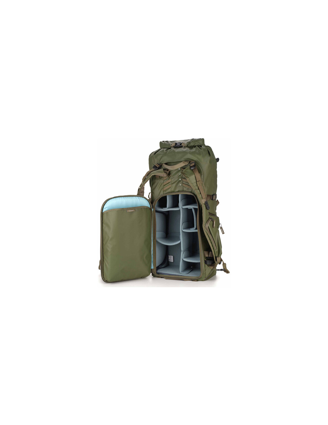 - Dostęp od tyłu, z boku i od góry płynnie łączy się z bocznym dostępem do plecaka Shimoda Action X50. Umożliwia również dostęp do aparatu/obiektywu od góry poprzez zamek błyskawiczny u podstawy rozkładanej górnej części, a także standardowy dostęp od tyłu do całego systemu aparatu.