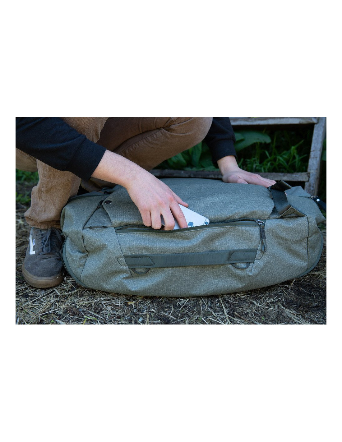 Bardzo długi główny zamek błyskawiczny zapewniający znacznie szerszy dostęp do wnętrza torby niż w przypadku tradycyjnych toreb typu Duffel co ułatwia pakowanie oraz zapewnia lepszą widoczność zapakowanych przedmiotów.