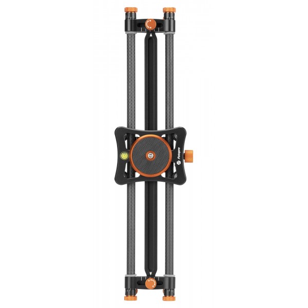 Dzięki niewielkim wymiarom slider Fotopro HG-02 nie zajmie dużo miejsca w Twoim plecaku. Prowadnice, po których porusza się ruchoma platforma, wykonano z włókna węglowego. Dzięki temu całe urządzenie waży zaledwie 360 g. Ergonomiczne blokady pozwalają błyskawicznie przygotować slider do pracy. Znajdziesz na nich oznaczenia, dzięki którym szybko zorientujesz się, w którą stronę należy obrócić pokrętło.
