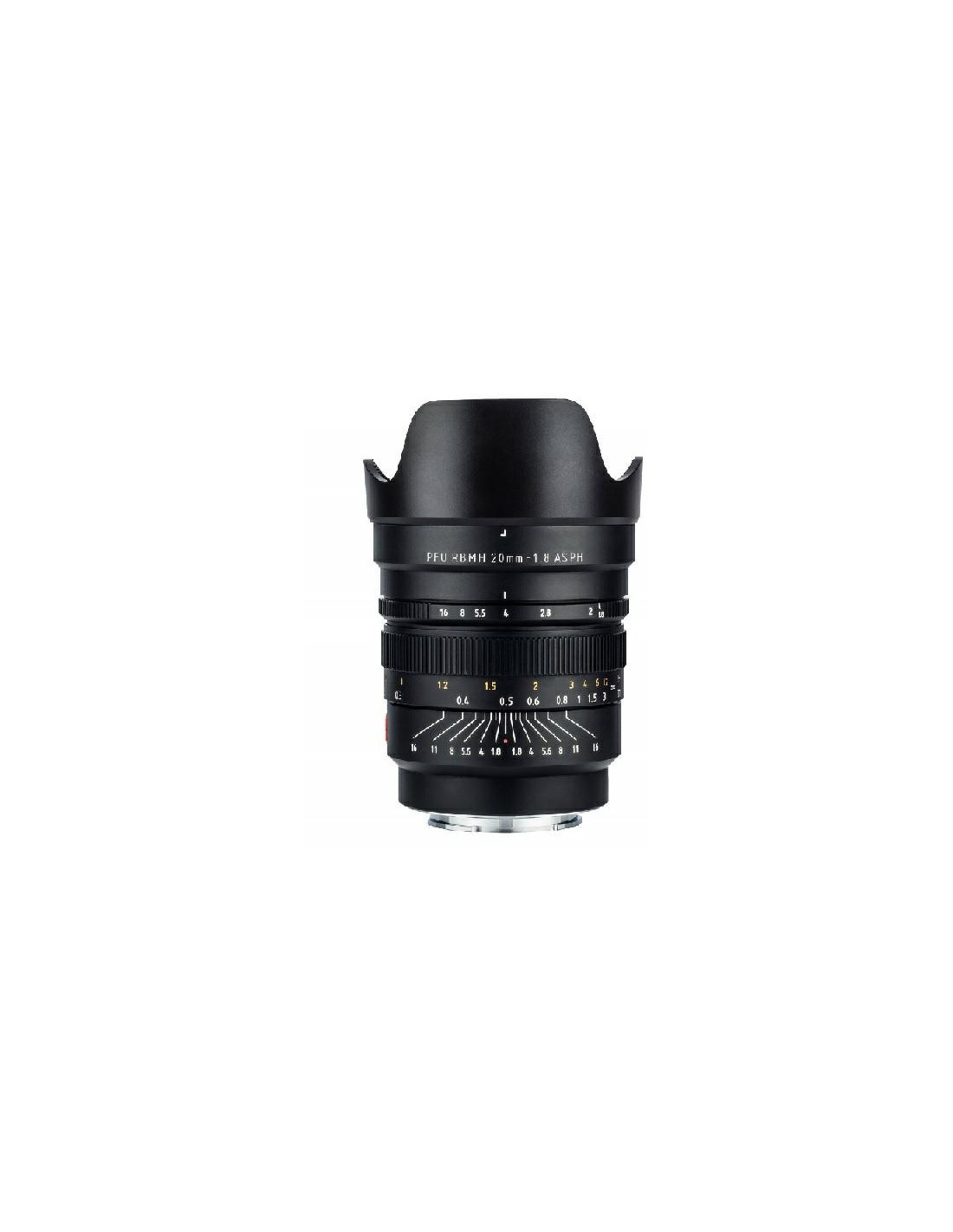 Obiektyw oferuje bardzo ostry obraz już od niskiej wartości przysłony f/1.8 co umożliwia uzyskanie wysokiej jakości zdjęć przy słabym oświetleniu. Tor optyczny tworzy 12 elementów ułożonych w 9 grupach. Są to najwyższej jakości soczewki w tym 1 element dwustronnie asferyczny oraz 4 soczewki ED. Niespotykaną cechą wśród innych współczesnych obiektywów jest przysłona Viltroxa 20mm 1,8 której konstrukcja składa się z 14 lamelek. Pomimo wypukłej soczewki Viltrox 20mm 1,8 dysponuje gwintem do mocowania okrągłych filtrów fotograficznych a jego średnica wynosi 82mm. Solidna metalowa konstrukcja Manualnie sterowany pierścień ostrości oraz przysłony Przysłona od f/1,8 do f/16 Przysłona posiada 14 listków Minimalna odległość ostrzenia 25cm Na obudowie znajduje się skala odległości oraz głębi ostrości Pierścień ostrości posiada zakres obrotu: 148.5°Jeden element asferyczny i 4 elementy ED Powłoka wielowarstwowa HD Nano Rozmiary: 102 mm x 76,8 mm Waga: 775 g