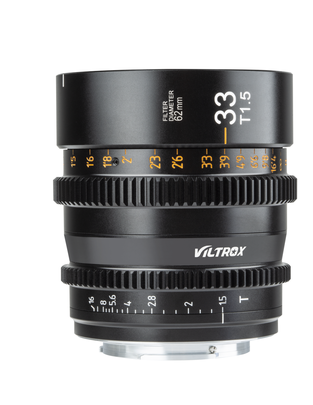 Viltrox S 33mm T1.5 Cine (APS-C) Viltrox S 33mm T1.5 to bardzo jasny obiektyw filmowy przeznaczony do aparatów Sony E z matrycą APS-C. Konstrukcja optyczna obiektywu składa się z 10 elementów w 9 grupach. Obiektyw wykonany jest z wysokiej jakości metalu. Ustawianie ostrości odbywa się manualnie za pomocą pierścienia wyposażonego w specjalne zębatki, które pozwalają na podłączenie obiektywu do systemu follow focus.