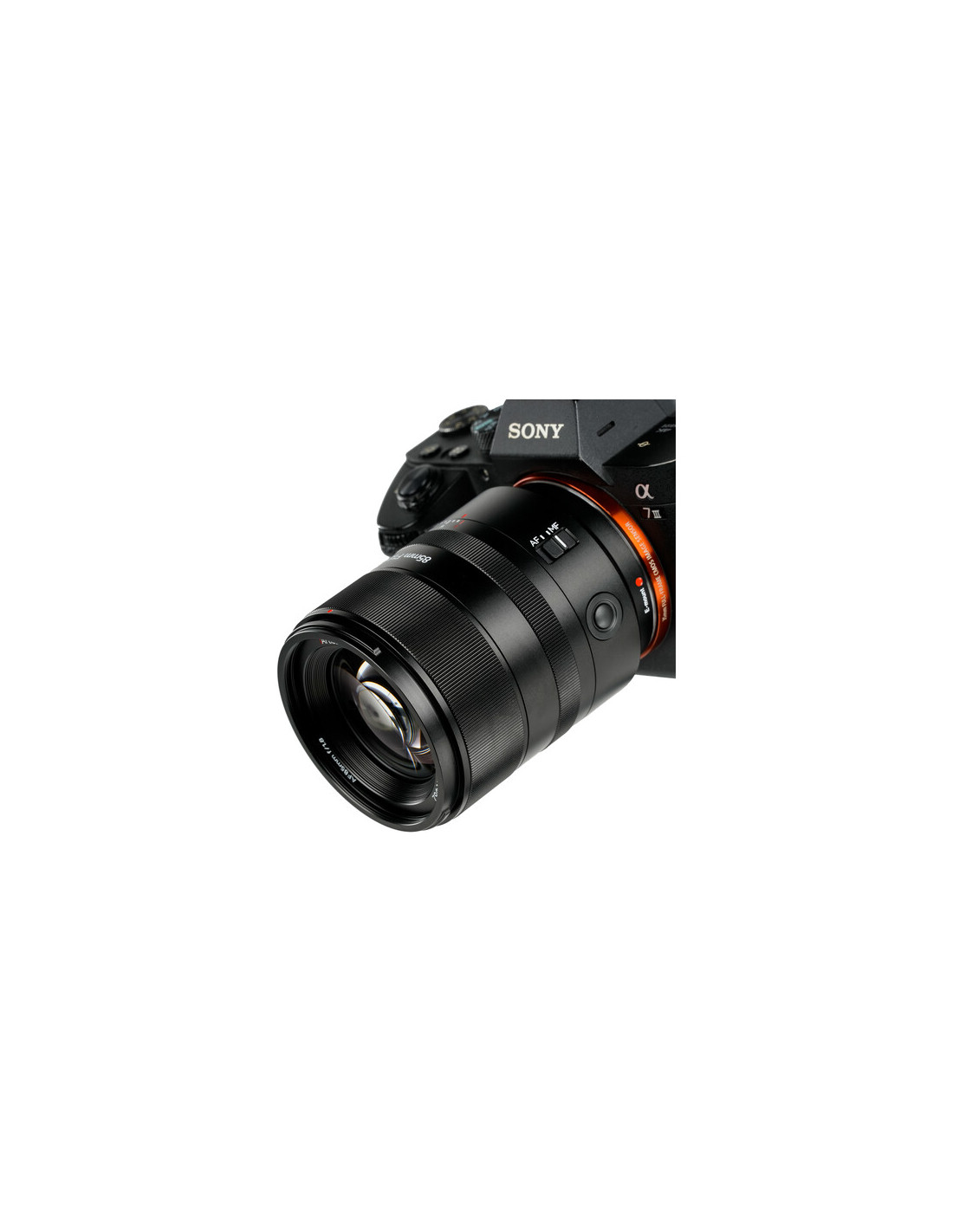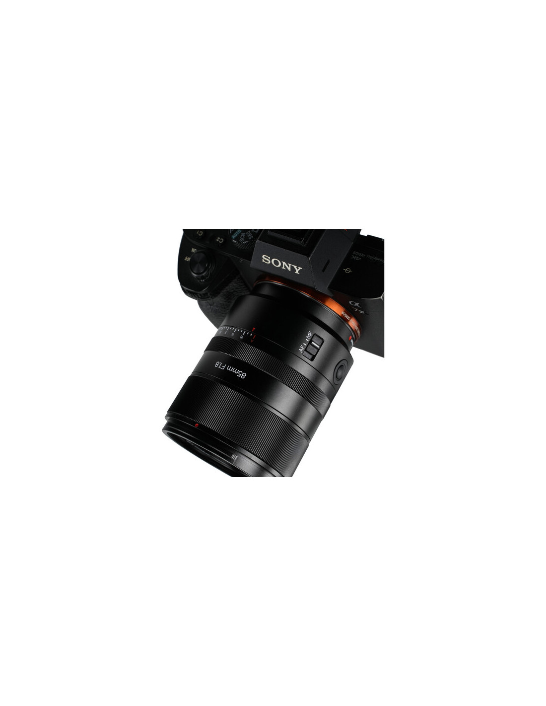Kompaktowy i lekki obiektyw Sony E-mount 85mm f/1.8 AF firmy 7artisans Photoelectric to kompaktowy, lekki obiektyw stałoogniskowy przeznaczony do użytku z pełnoklatkowymi aparatami bezlusterkowymi lub lustrzankami cyfrowymi. Ogniskowa 85 mm idealnie nadaje się do portretów, lekko kompresując tło, dzięki czemu obiekt „wyskakuje” w kadrze. Jego konstrukcja optyczna zawiera dwa elementy o bardzo niskiej dyspersji, które pomagają zredukować kolorowe obwódki i aberracje chromatyczne. Obiektyw 85 mm f/1.8 jest wyposażony w szybki i dokładny autofokus oraz konfigurowalny przycisk funkcyjny.