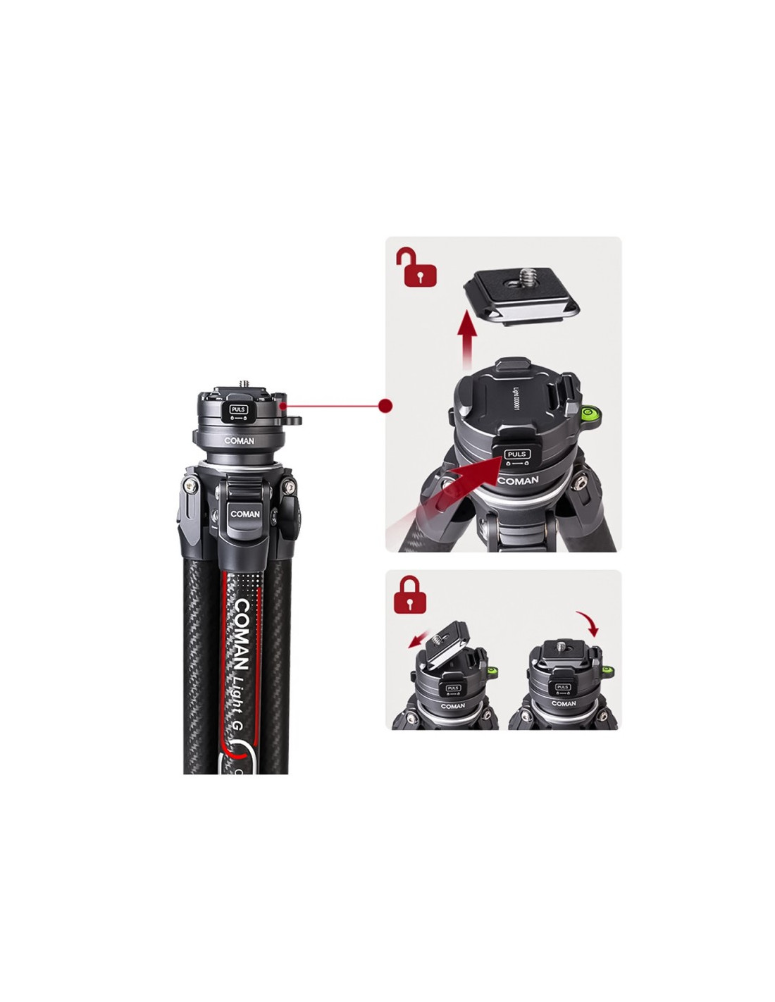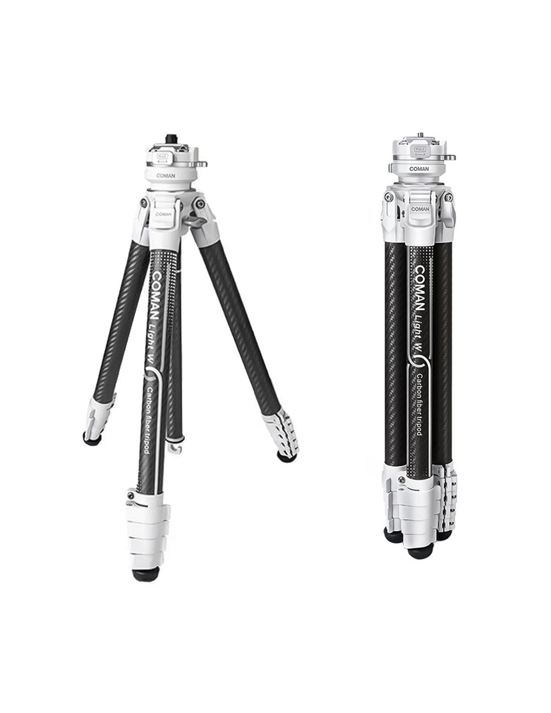 Nowoczesny, lekki i wielofunkcyjny statyw fotograficzny Coman Light W przeznaczony do aparatów fotograficznych (lustrzanek i bezlusterkowców), niewielkich kamer czy uchwytów do smartfonów. Jego maksymalna wysokość wynosi 158 cm, a towarzyszy jej niewielka waga, wynosząca zaledwie 1,2 kg. Wykorzystane w jego konstrukcji włókno węglowe pozwoliło stworzyć produkt odporny na uszkodzenia mechaniczne, wytrzymały i wygodny w transporcie.
