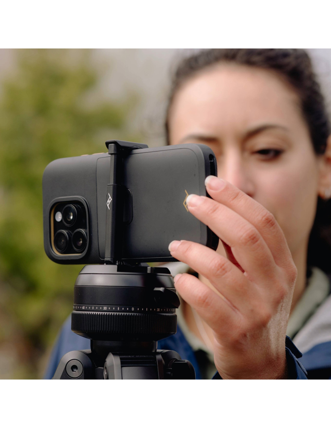 Tilt Mod to dodatkowe akcesorium (sprzedawane osobno), które natychmiast przekształca głowicę kulową statywów Peak Design Pro w w pełni funkcjonalną głowicę wideo z płynnością obrotu i pochylenia. To akcesorium, które zapewnia wyjątkową wszechstronność, a jednocześnie jest na tyle kompaktowe, że zmieści się w jednej przegródce na obiektyw w torbie fotograficznej.