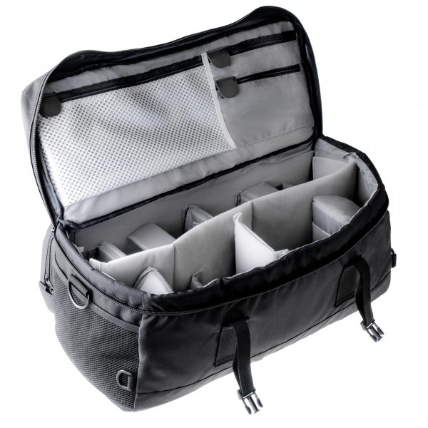 Komora główna, dzięki przestawialnym przegrodom, może być dowolnie konfigurowana i dzielona nawet na 18 części. Dowolna konfiguracja zapewnia optymalne wykorzystanie przestrzeni oraz perfekcyjne dopasowanie do sprzętu i potrzeb użytkownika. Torba pomieści 2-3 korpusy, do 12 obiektywów, lampy błyskowe oraz szereg innych akcesoriów takich jak: aparat kompaktowy, kamera, filtry, ładowarki, piloty, akumulatory, czytniki itp. Camrock Tank X65 posiada wiele przegródek i kieszeni aby zapewnić znakomitą organizację akcesoriów:
