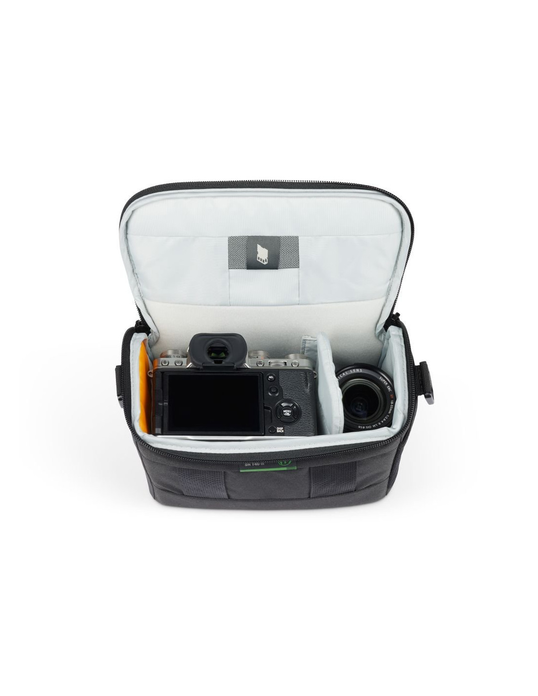Lowepro SH 140 III to torba przeznaczona na bezlusterkowca z obiektywem (np. Fujifilm XT200, Canon M50 MII, EOS R10, Nikon Z50), dodatkowy obiektyw oraz mniejsze akcesoria takie jak baterie i karty pamięci.