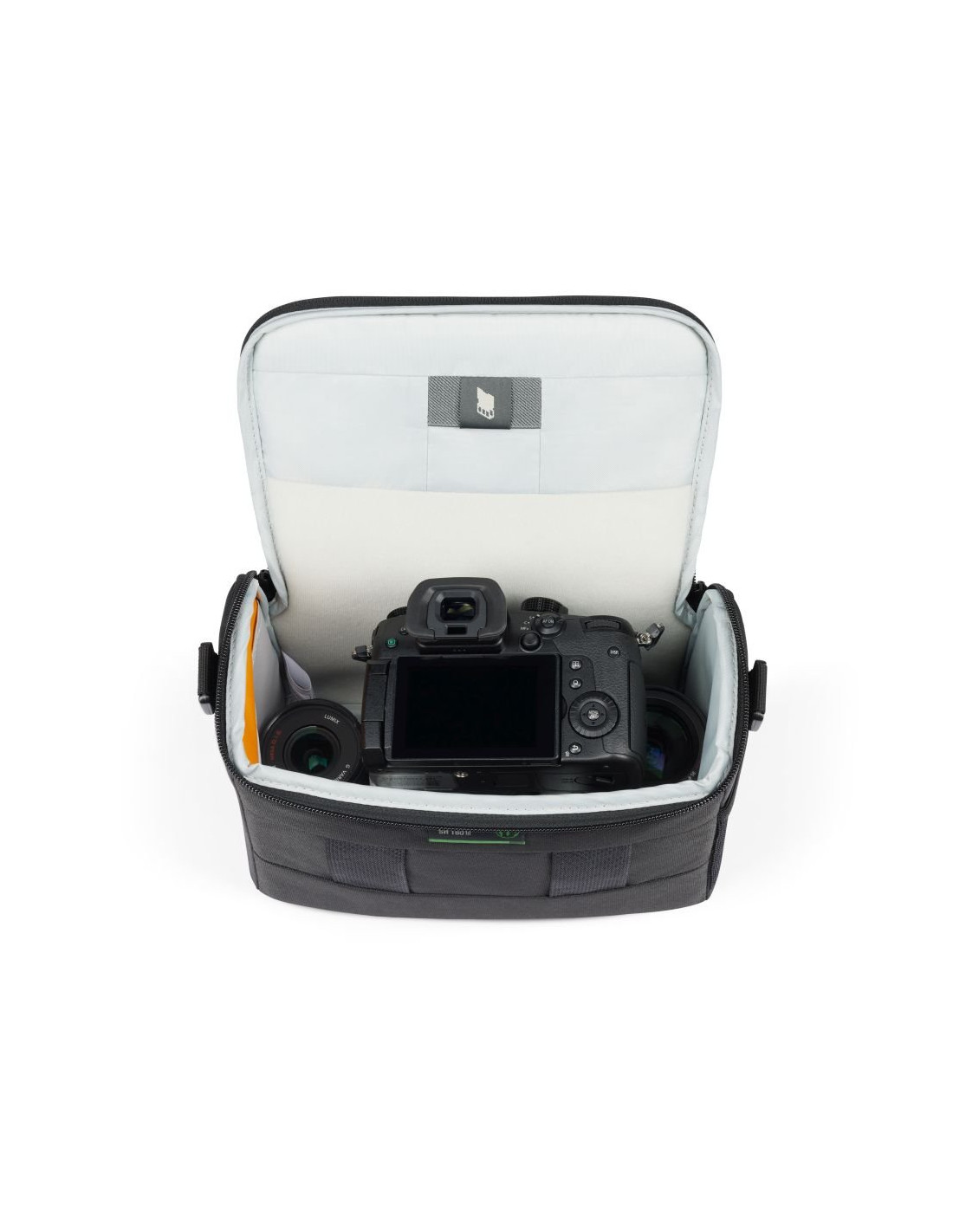 Lowepro SH 160 III to torba przeznaczona na lustrzankę lub bezlusterkowca z obiektywem (np. Sony Alpha 7 z obiektywem 24-70mm), 2-3 dodatkowe obiektywy oraz mniejsze akcesoria takie jak baterie i karty pamięci.