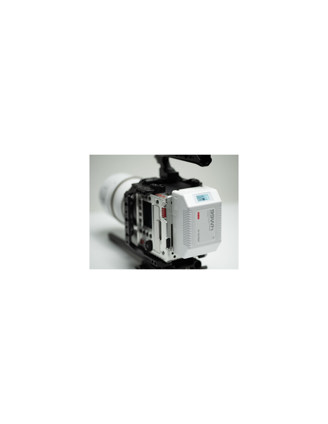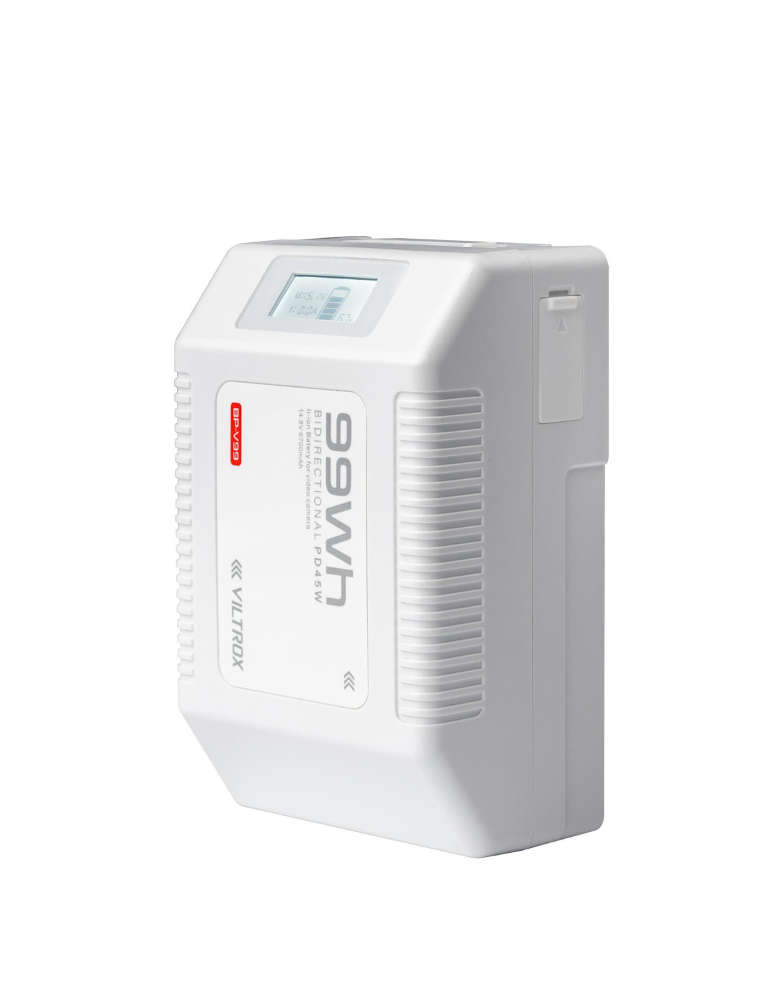 Porty D-Tap i USB-C mogą być również używane jako wejścia do ładowania baterii za pomocą opcjonalnej szybkiej ładowarki lub standardowej ładowarki V-mount. Istnieje wiele wbudowanych funkcji ochrony prądowej, które chronią baterię przed przeładowaniem/rozładowaniem, zwarciem, przepięciem, przegrzaniem i ochroną przed polem elektromagnetycznym. Jasny ekran LCD pokazuje stan naładowania baterii.